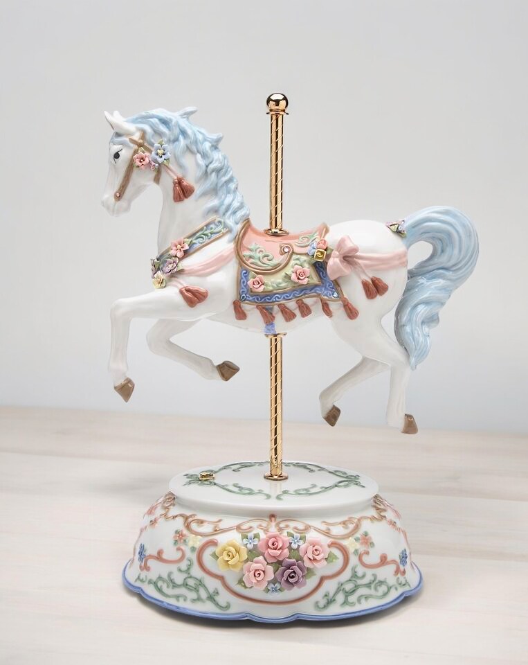 Ceramic Tasseled Carousel Music Box, Horse Lover Gift, Gift for Her, Gift for Mom, Home Decor