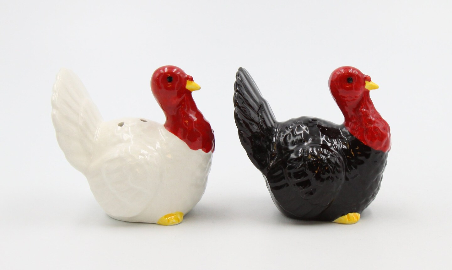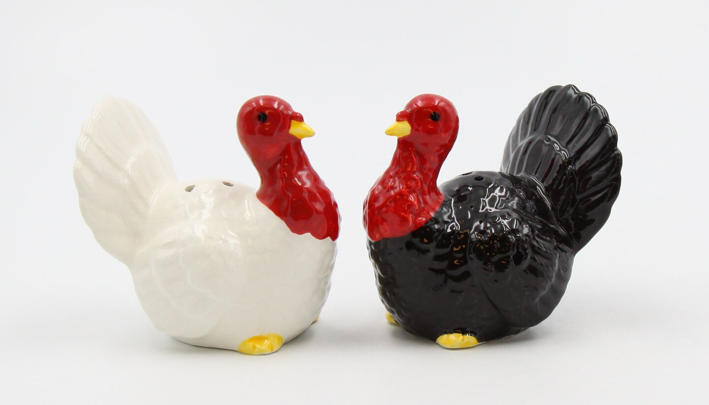 Ceramic Thanksgiving Small White & Black Turkey Salt And Pepper Shakers, Home Décor, Gift for Her, Gift for Mom, Kitchen Décor, Fall Décor
