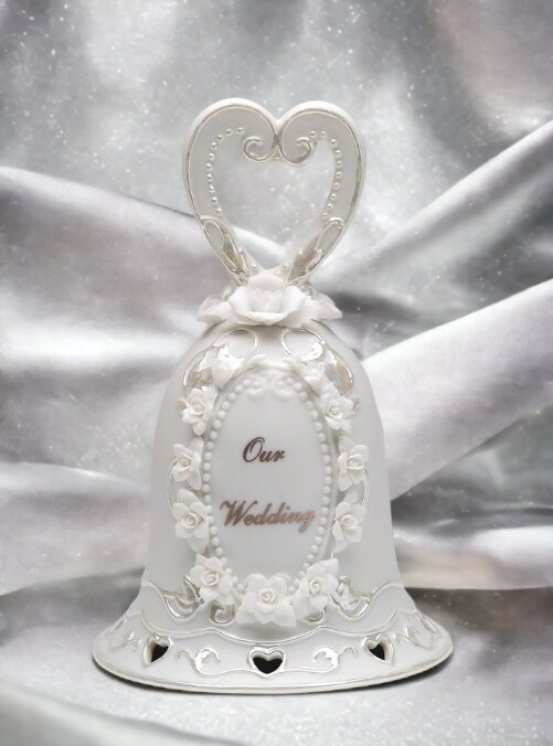 Ceramic Wedding Bell with Rose Flowers, Wedding Décor or Gift, Anniversary Décor or Gift, Home Décor