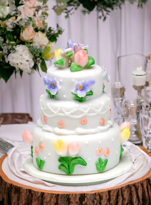 Ceramic Wedding Cake with Tulip Flowers Jewelry Box, Wedding Décor or Gift, Anniversary Décor or Gift, Home Décor, Vanity Decor