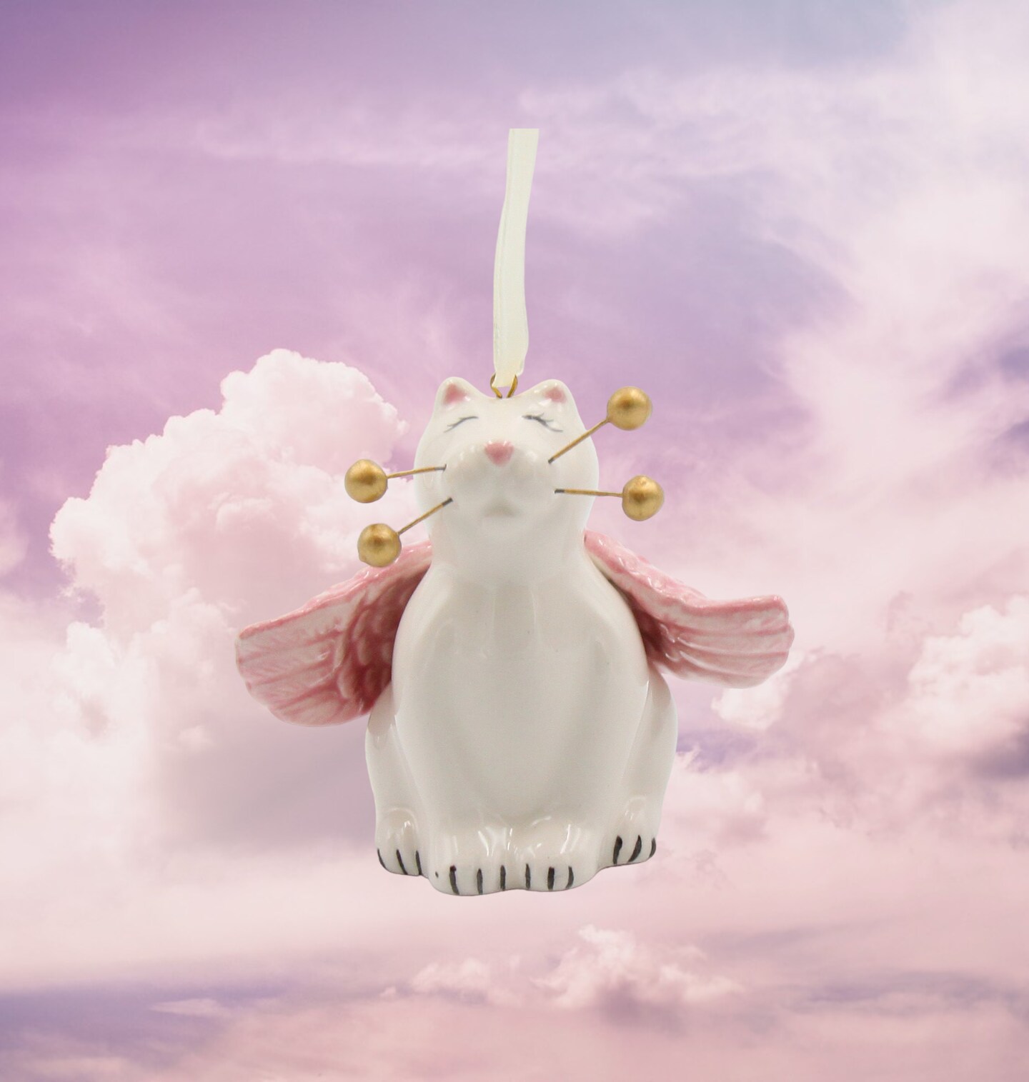 Ceramic Whisker Cat Angel Ornament, Home Décor, Religious Décor, Religious Gift, Church Décor, Cat Lover Gift, Pet Loss Gift
