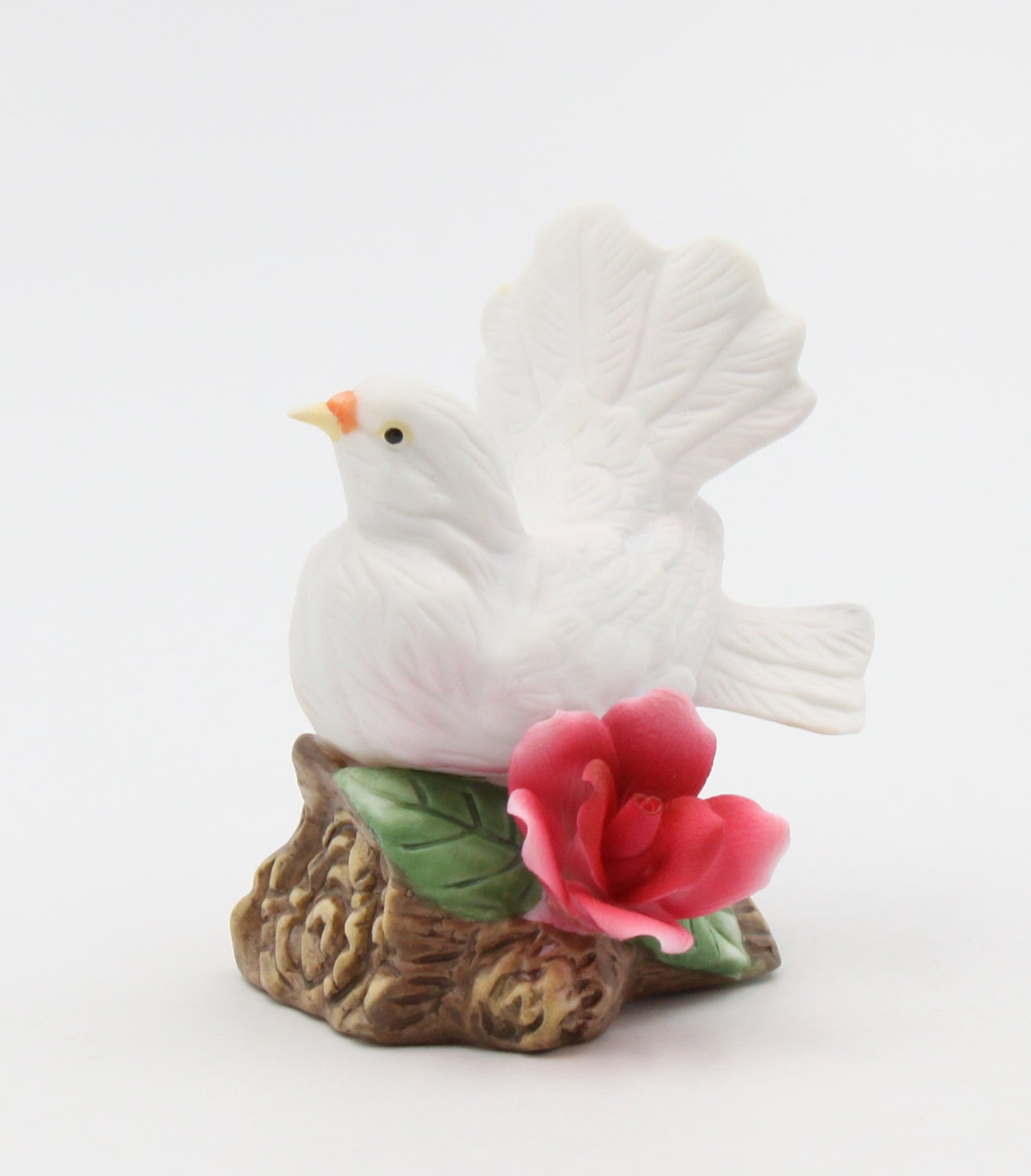 Ceramic White Dove Bird with Red Rose Flower Figurine, Garden Decor, Vintage Decor, Gift for Her, Gift for Mom
