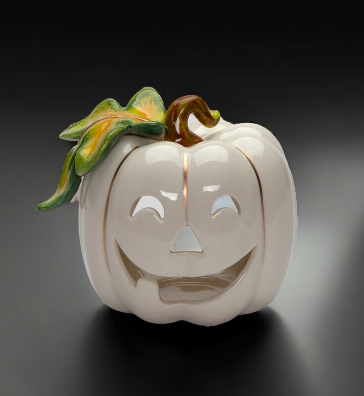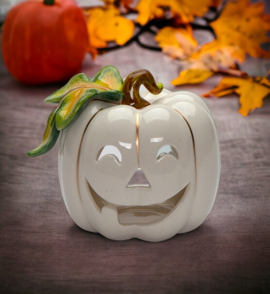 Ceramic White Pumpkin Jack-O-Lantern Tealight Candle Holder, Home Décor, Gift for Her, Gift for Mom, Fall Décor, Halloween Décor
