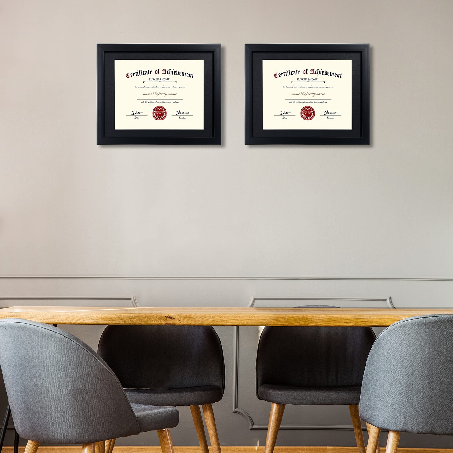Certificate Frames 8.5 x 11 Black, Fits Diploma 8.5 x 11 with Mat or 11x14 without Mat, Document Degree Picture Award Frame with Glass for Tabletop or Wall Display