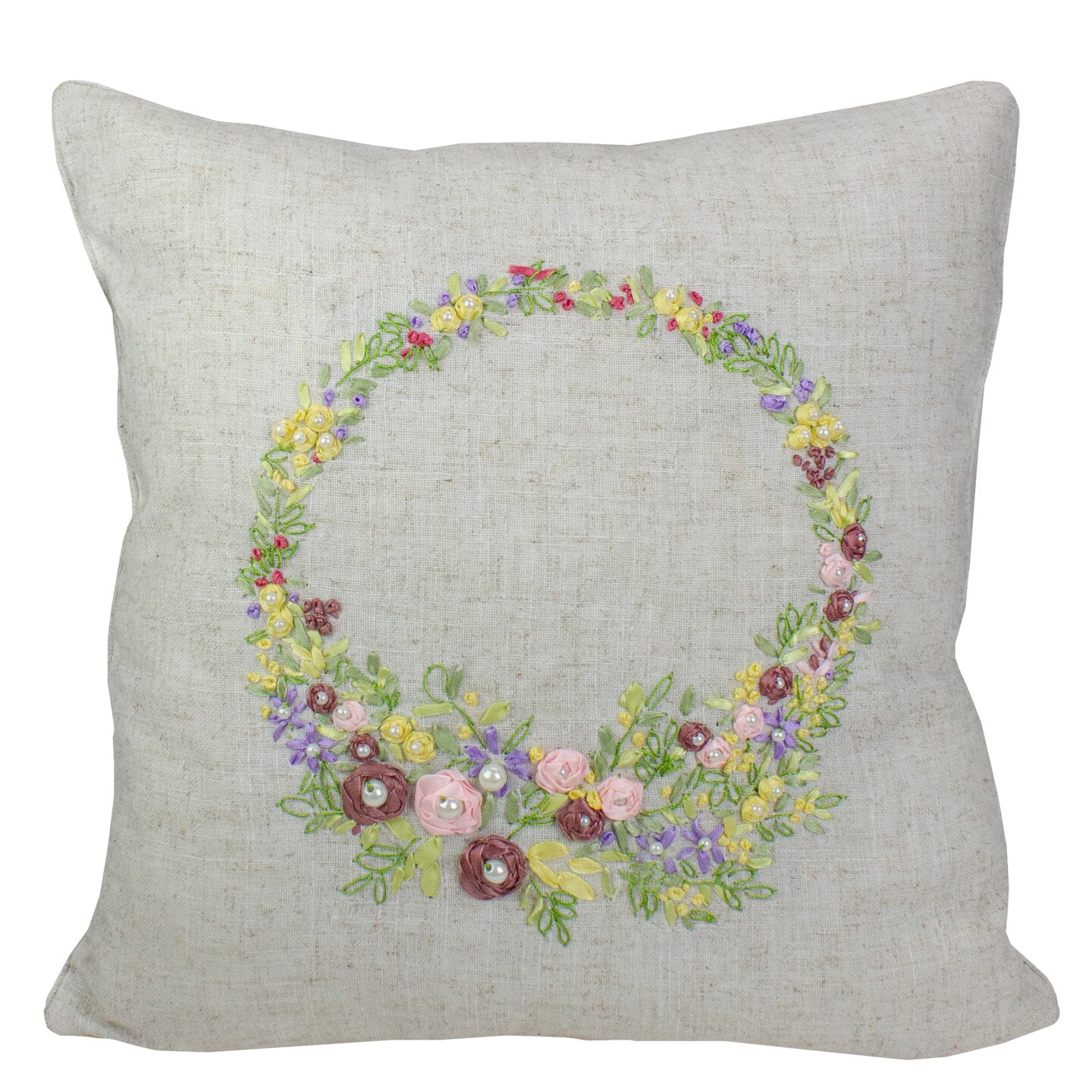 C&F Home 16" Square Beige Floral Wreath Throw Pillow