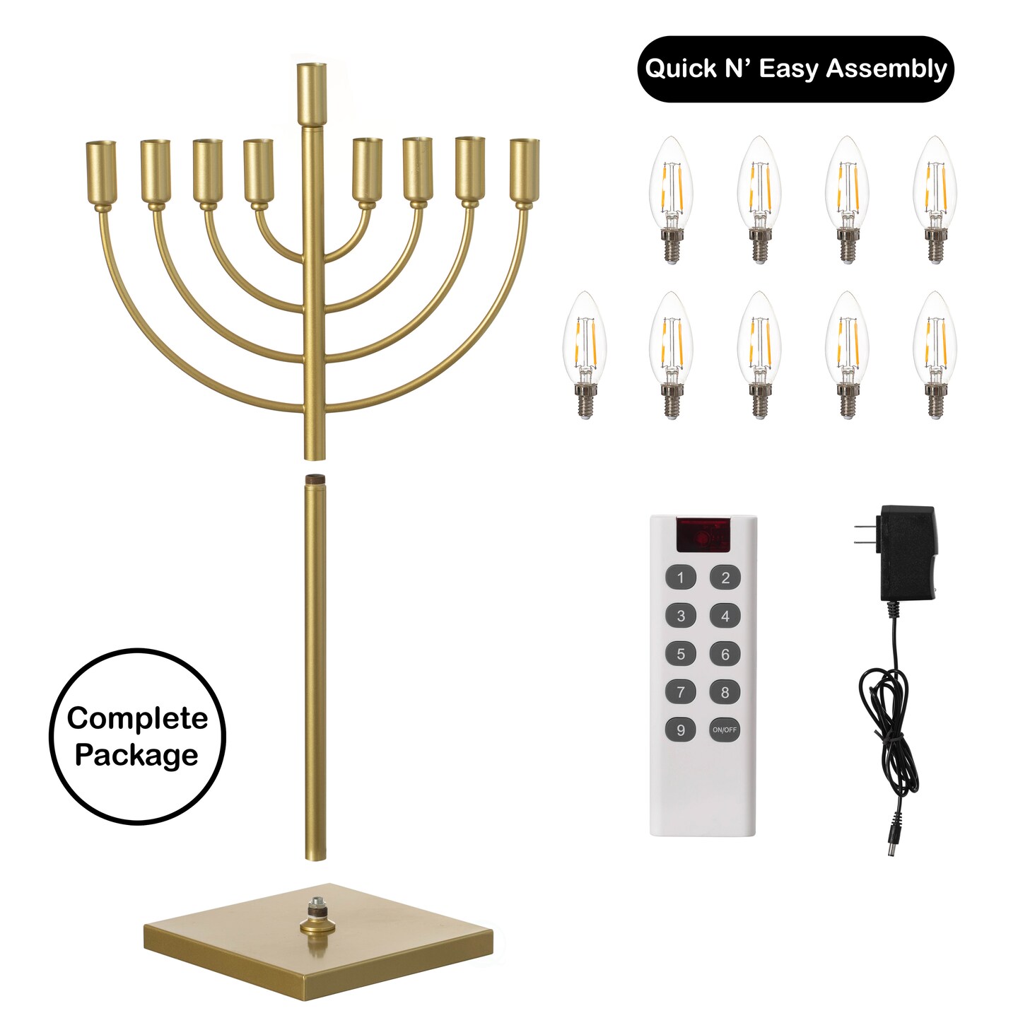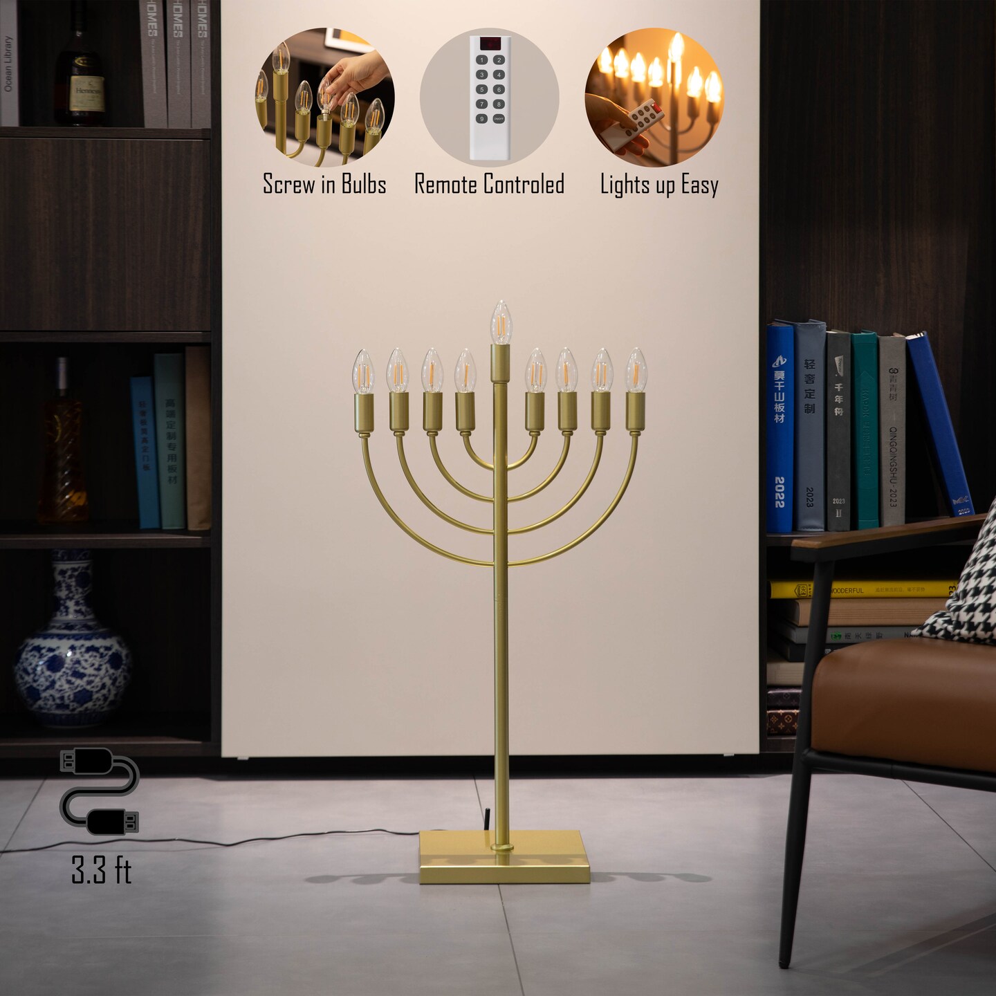 Chabad Style Hanukkah Menorah for Entryway, Living Room, Office, and Kitchen with LED Light Bulbs and Remote Control for Easy Daily Hanukkah Lighting Sequence