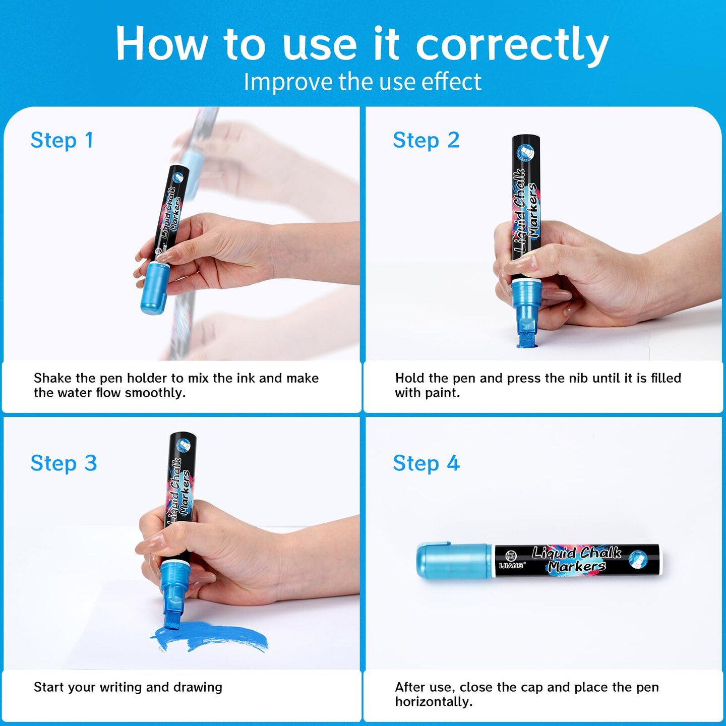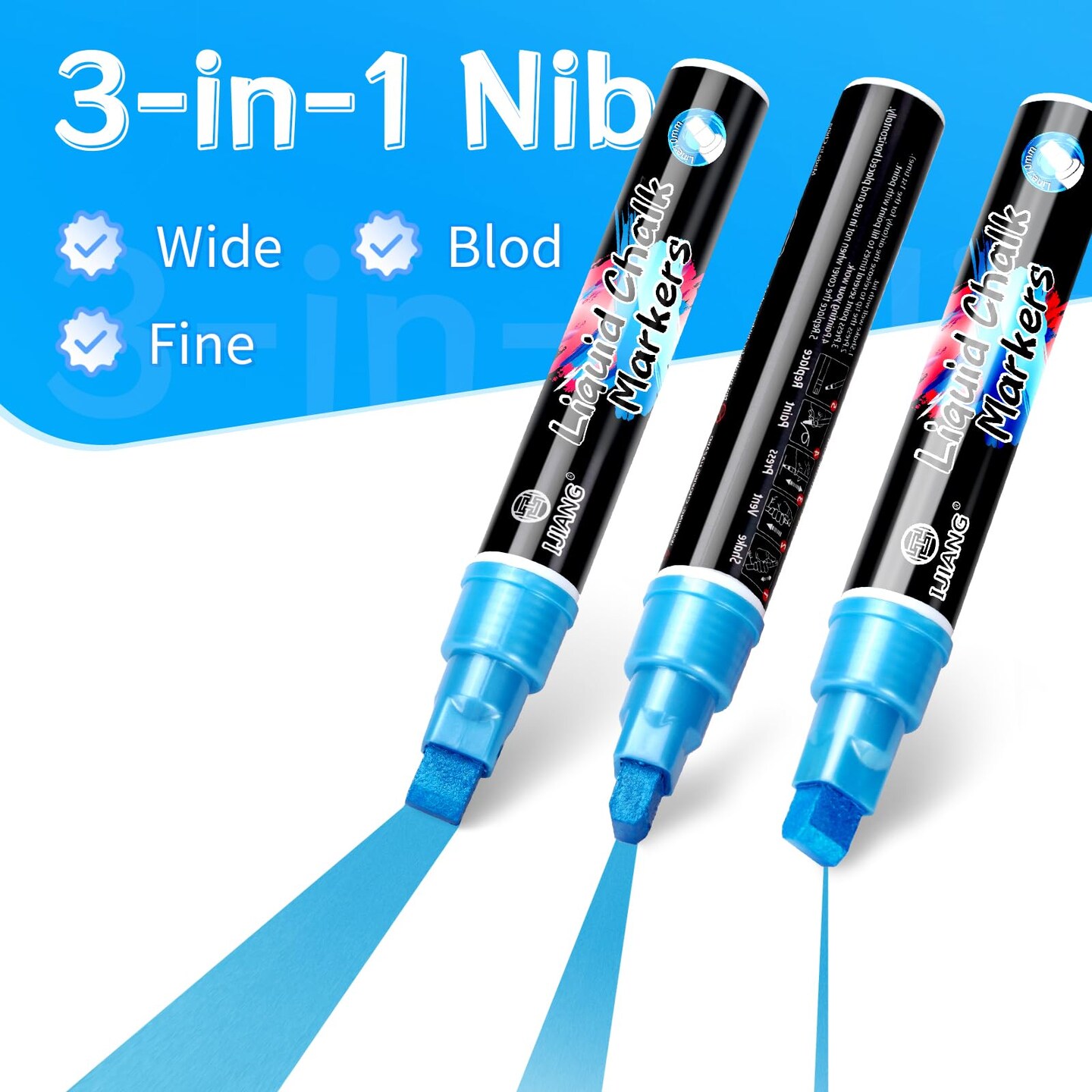 Chalk Markers for Car Glass Washable, Metallic Liquid Chalk Marker Dry & Wet-Erasable 10 MM 3-in-1 Tip Chalkboard Markers Non-Toxic Dust Free 8 Color Chalk Pens Windows Mirrors Glass