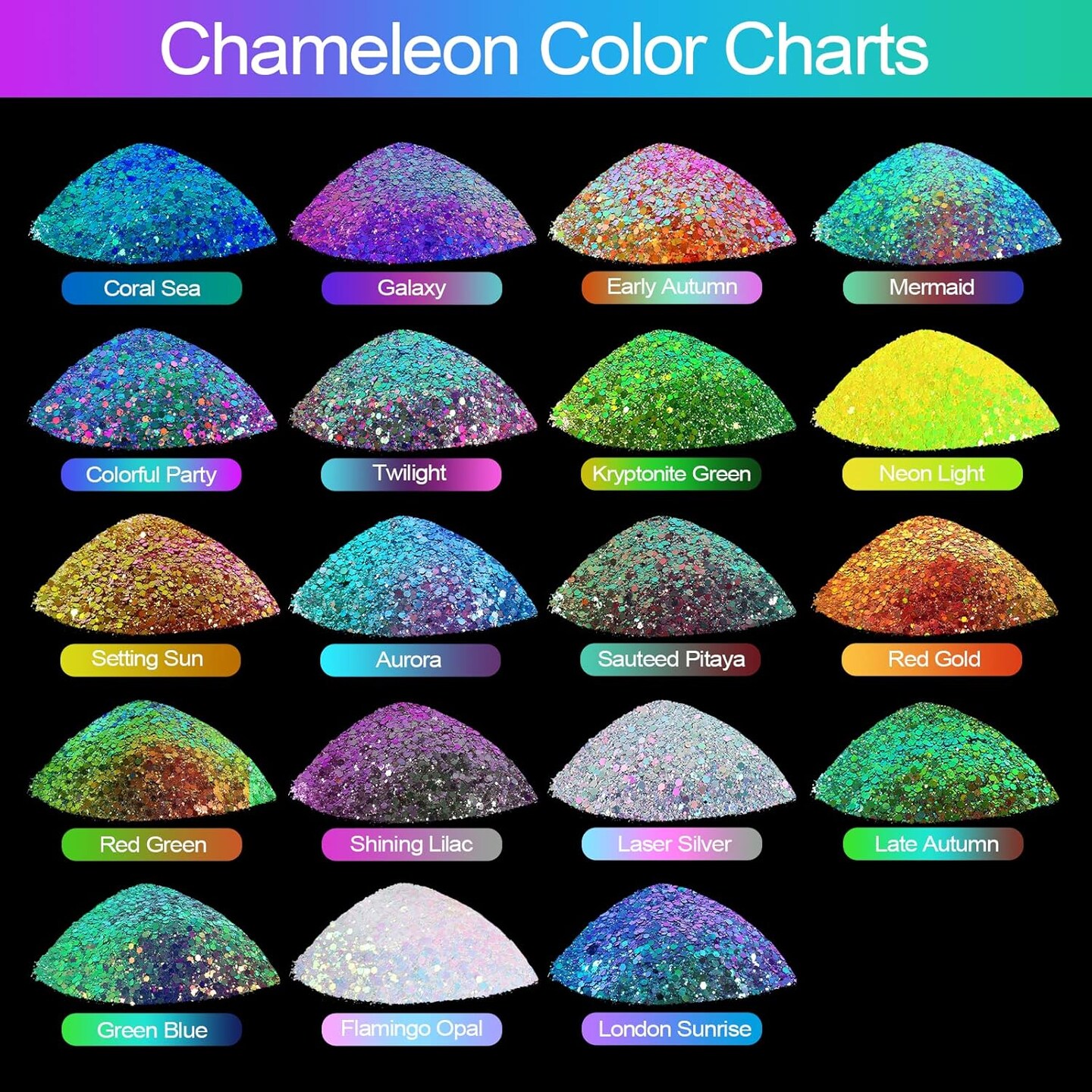 Chameleon Chunky Glitter, Mixed Fine Powder Color Shift 1.75 Oz (50g) PET Flake Purple Green Orange Glitters Sequin Resin Pigment Chip Dust for Slime Painting Craft Hair Nail - Colorful Party