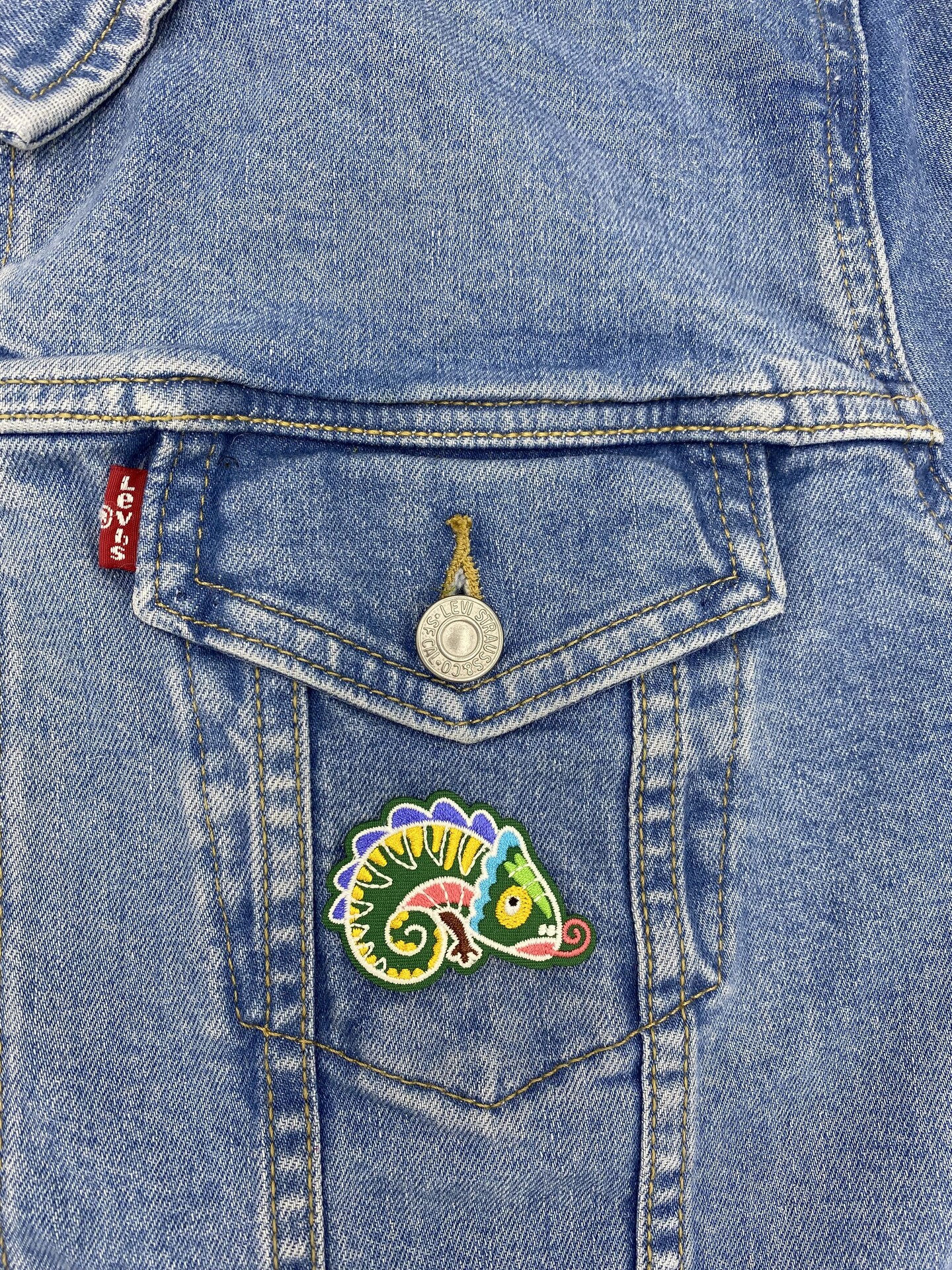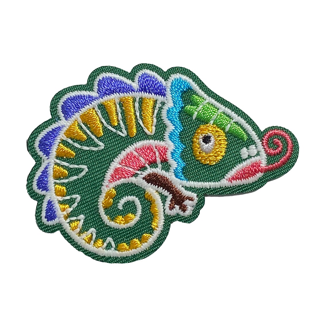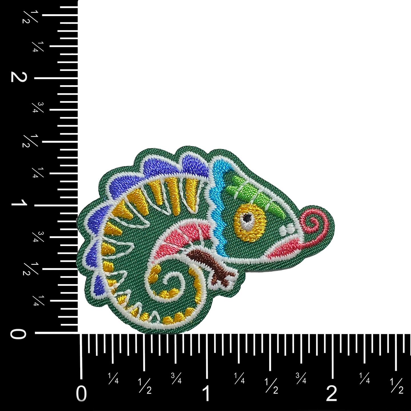 Chameleon, Folk Art, Embroidered, Iron-on Patch