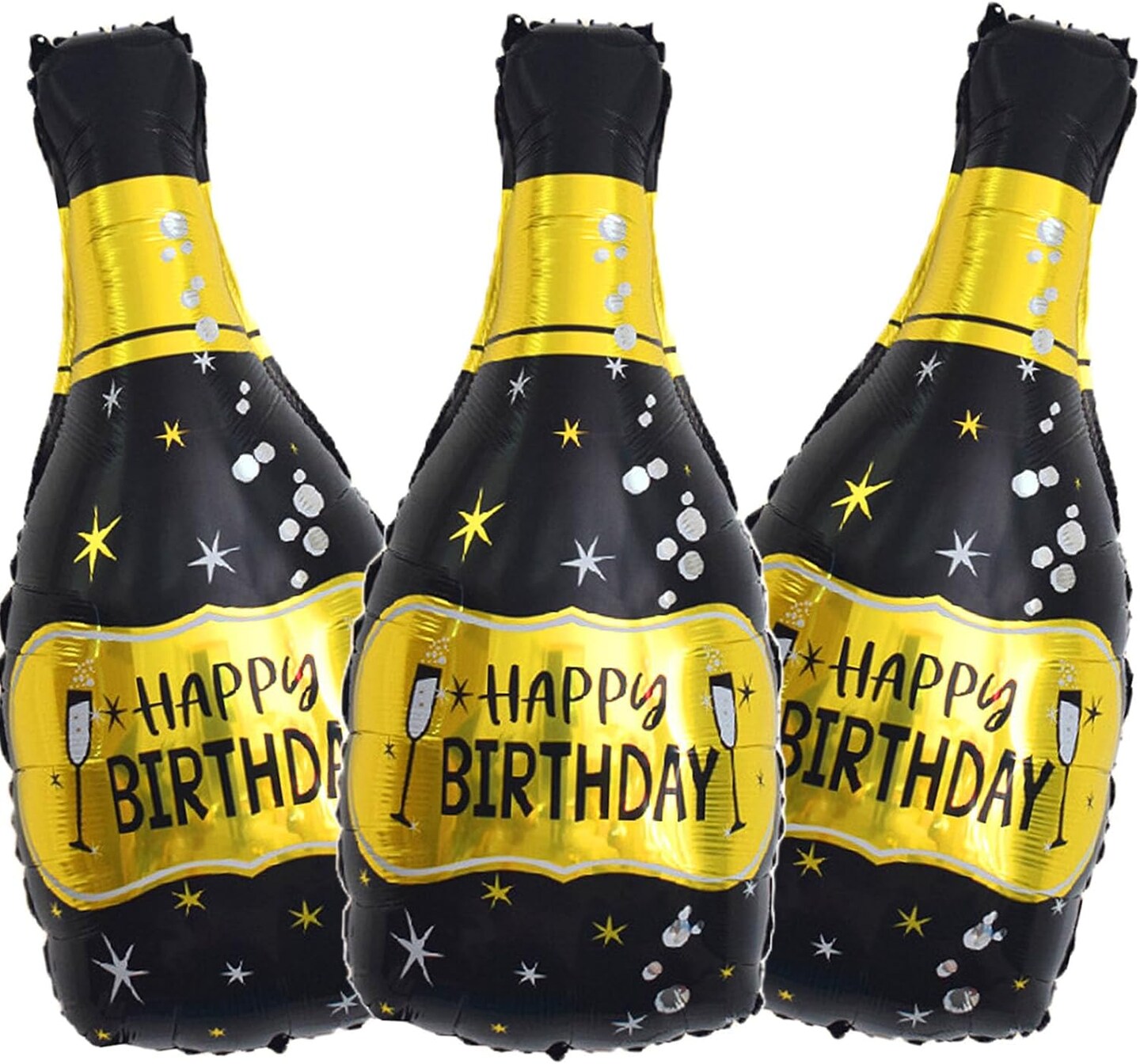 Champagne Bottle Foil Balloons – Black & Gold, 3-Piece Set for Birthday, Wedding, and Anniversary Party Decorations