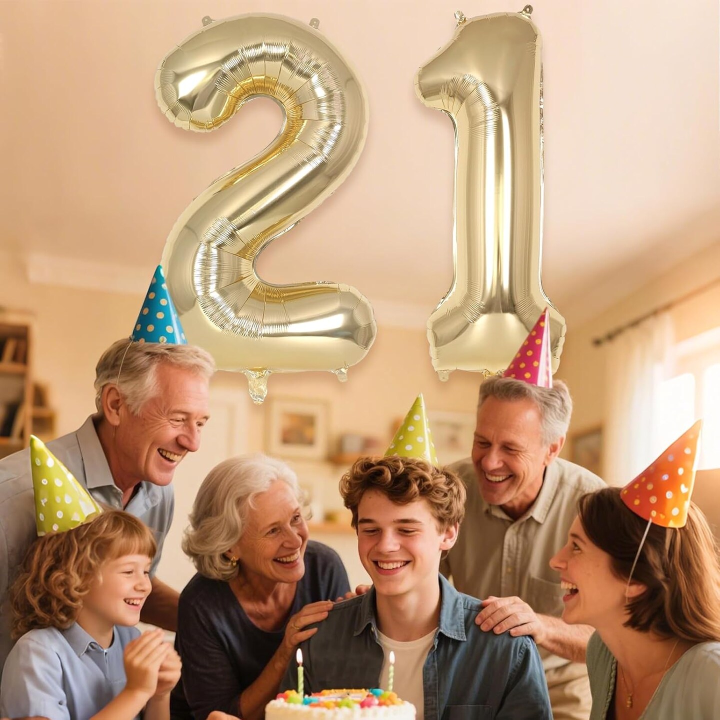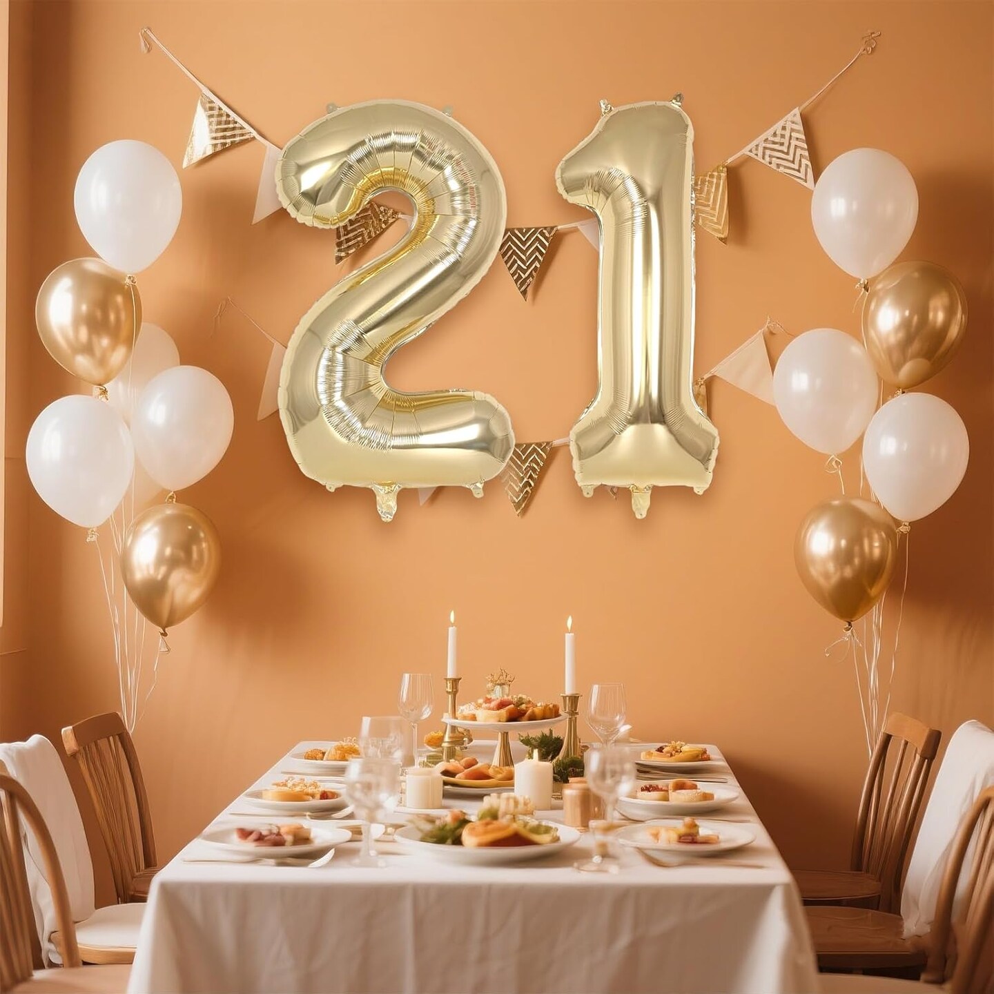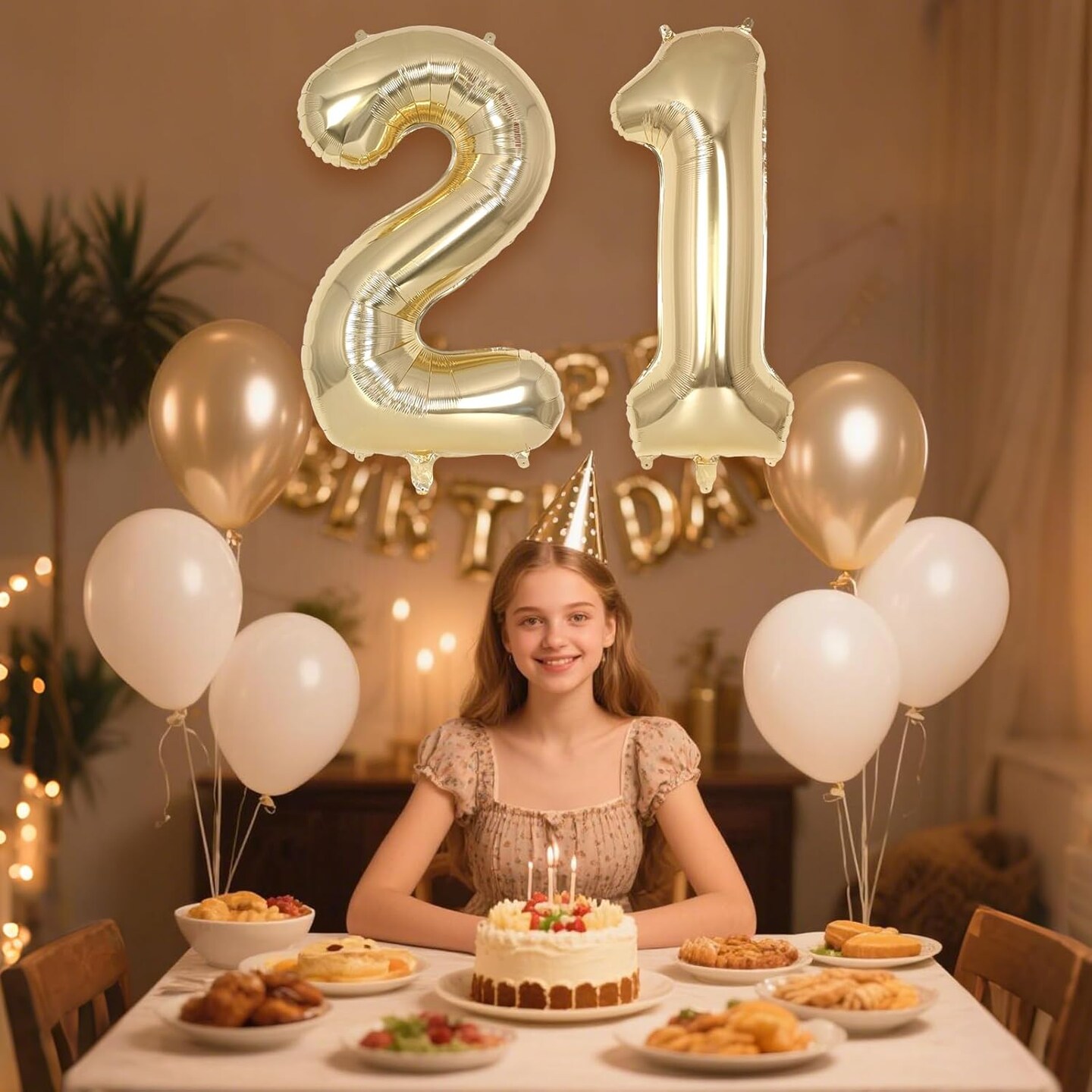 Champagne Gold Large Number 21 Balloon, 40 Inch Light Gold Foil Helium Number (Champagne Gold 21)