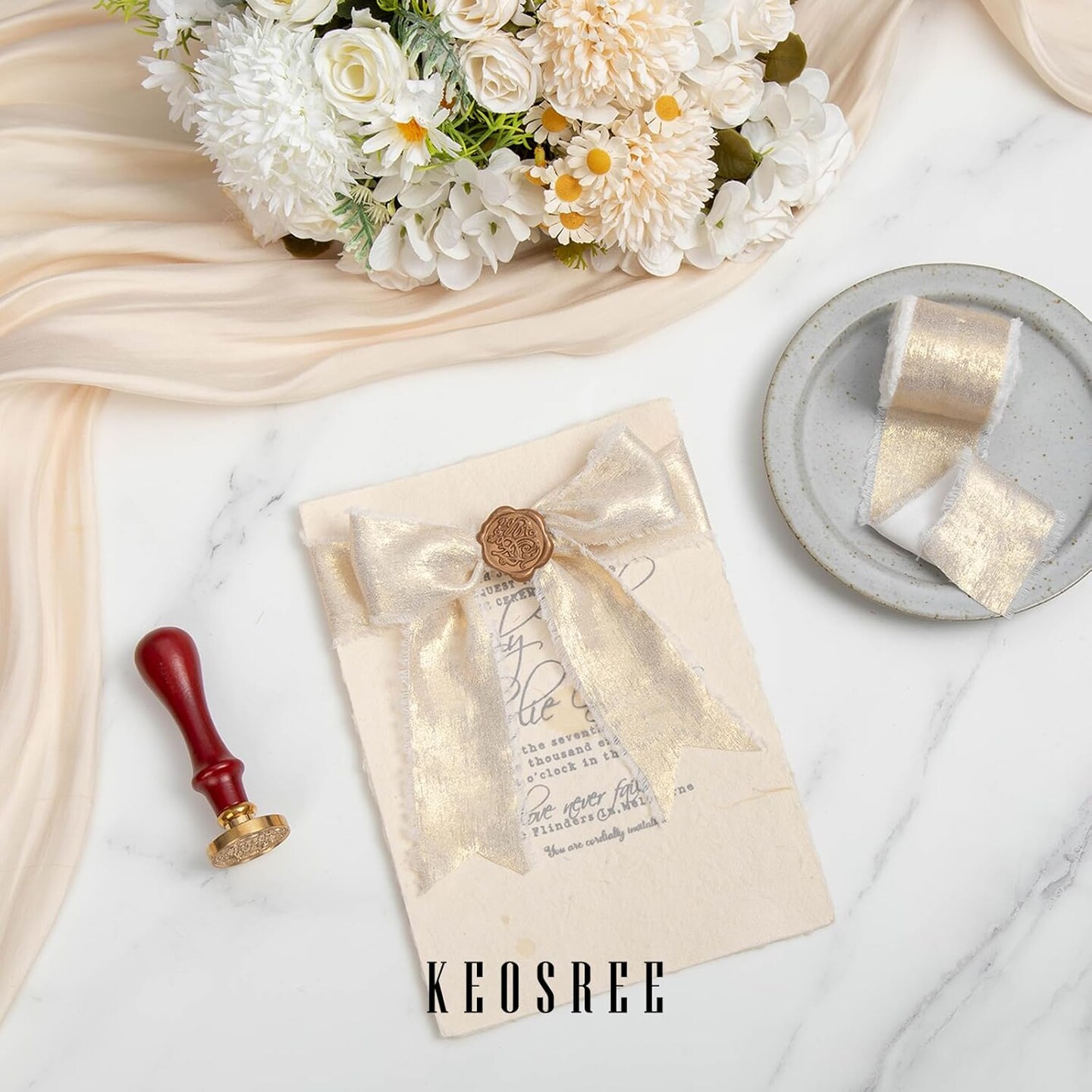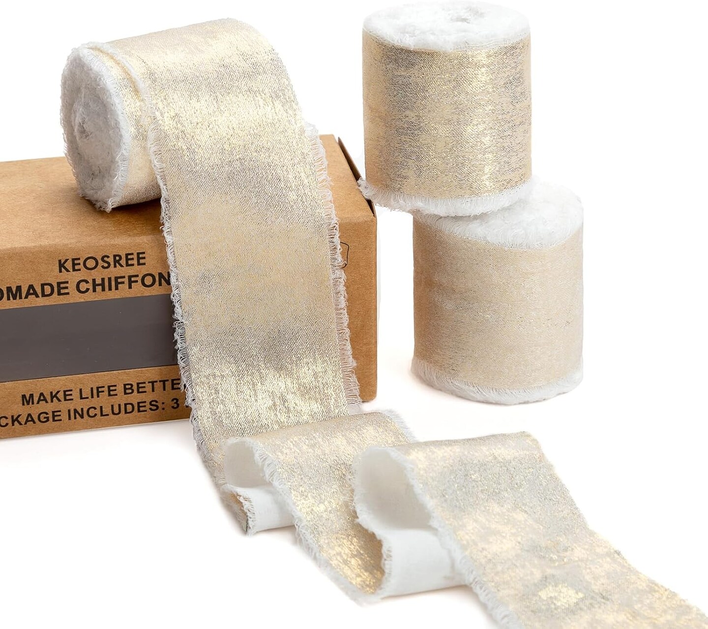 Champagne Gold Silk Chiffon Ribbon (Champagne Gold) 540"L x 1.5"W