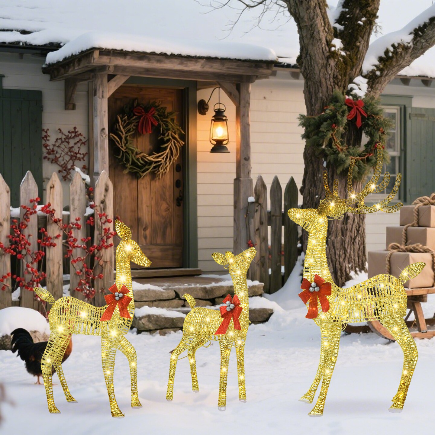 Champagne Woven Vine Set of 3 Reindeer with Warm White LED Lights for Holiday Decor 63" 52" & 37" Height