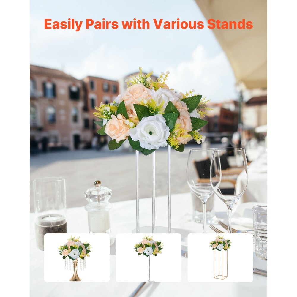 Champagne-White Silk Flower Balls Set of 10 with Plastic Base for Decor