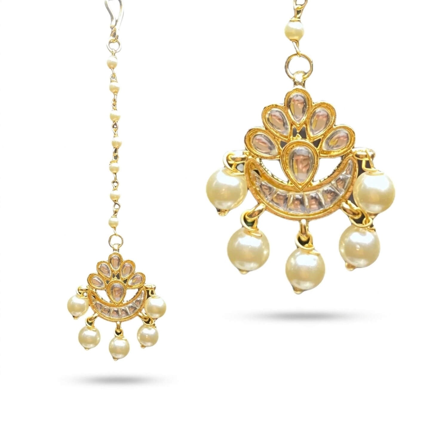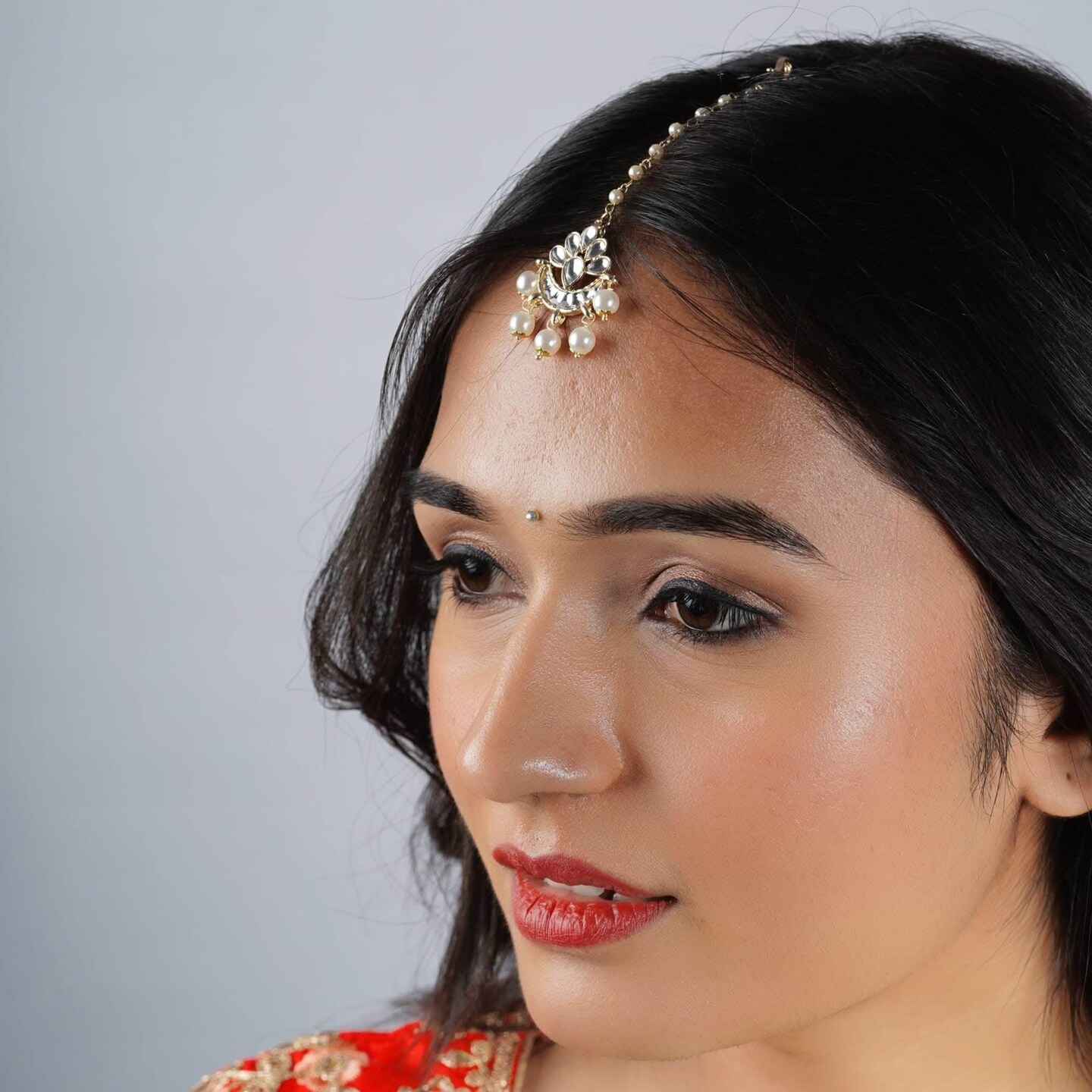 Chand Tikka with Gold Plating Indian Traditional Maang Tikka Women Forehead Jewelry Studded Bridal Party Designer Wedding Forehead Hair Accessories Favor Gift for Her