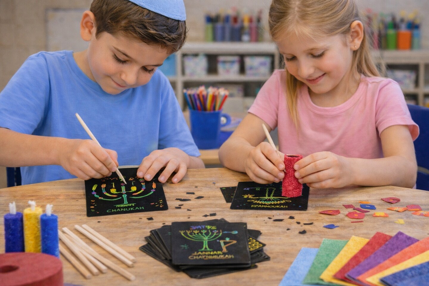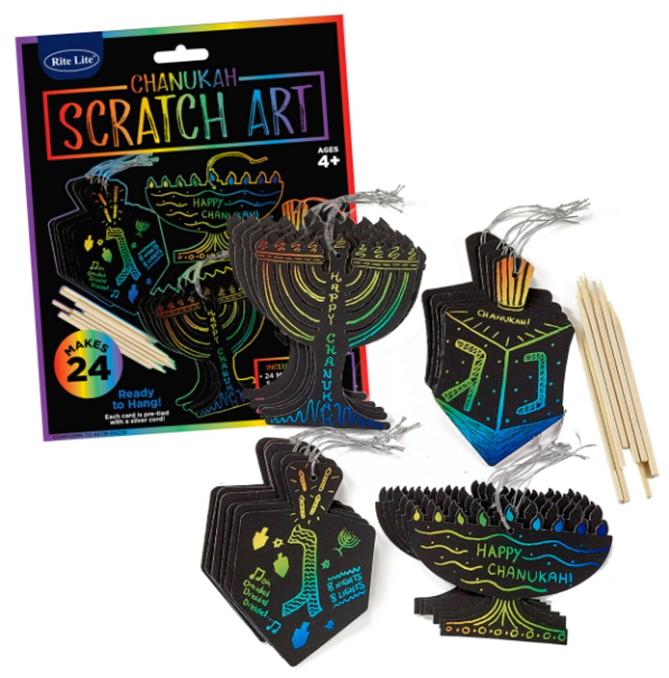 Chanukah Scratch Art Paper Kit, 24 Cards – Hanukkah Kids Craft Activity with Wooden Styluses