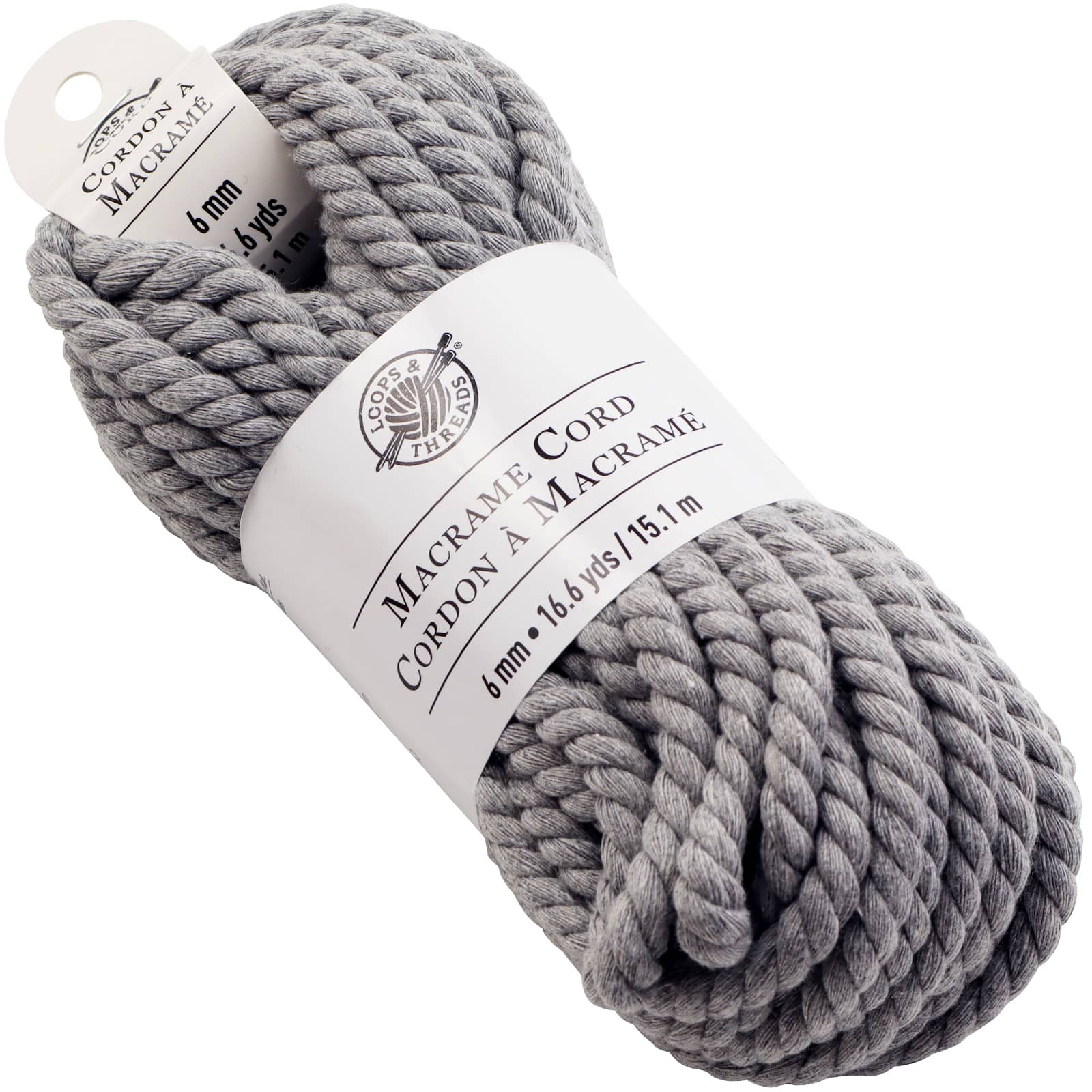 Charcoal Macramé Cotton Cord by Loops & Threads®, 75ft.