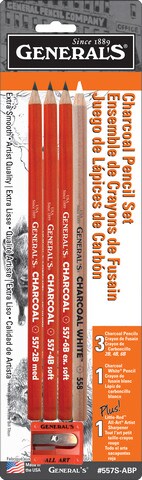 CHARCOAL PENCIL SET AND SHARPENER CARDED