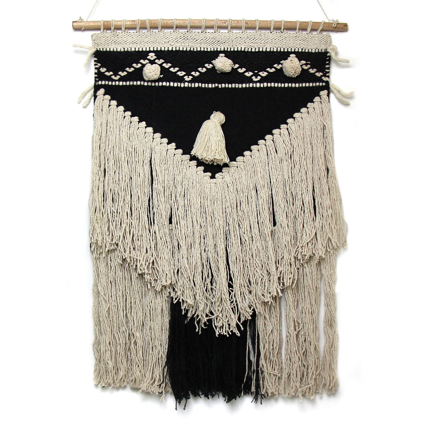 Charcoal-Cream Recycled Cotton Textured Bohemian Wall Art Handwoven