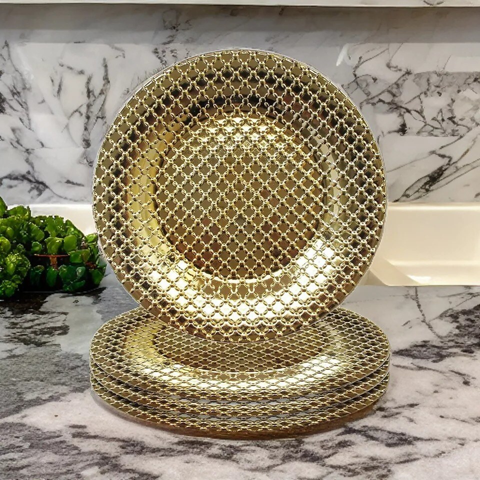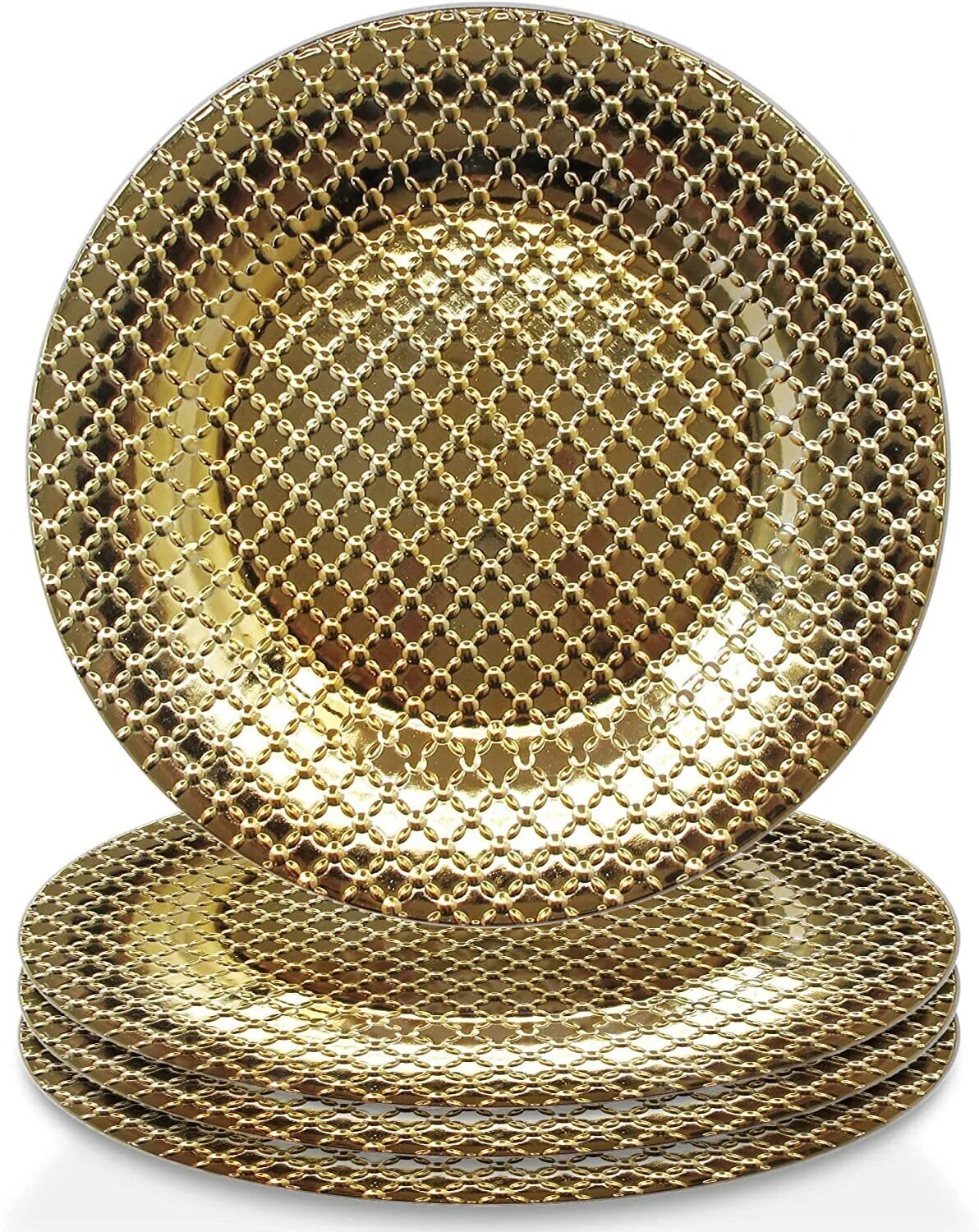 Charge It by Jay Links Charger Plate 13" Decorative Melamine, Set of 4, Gold