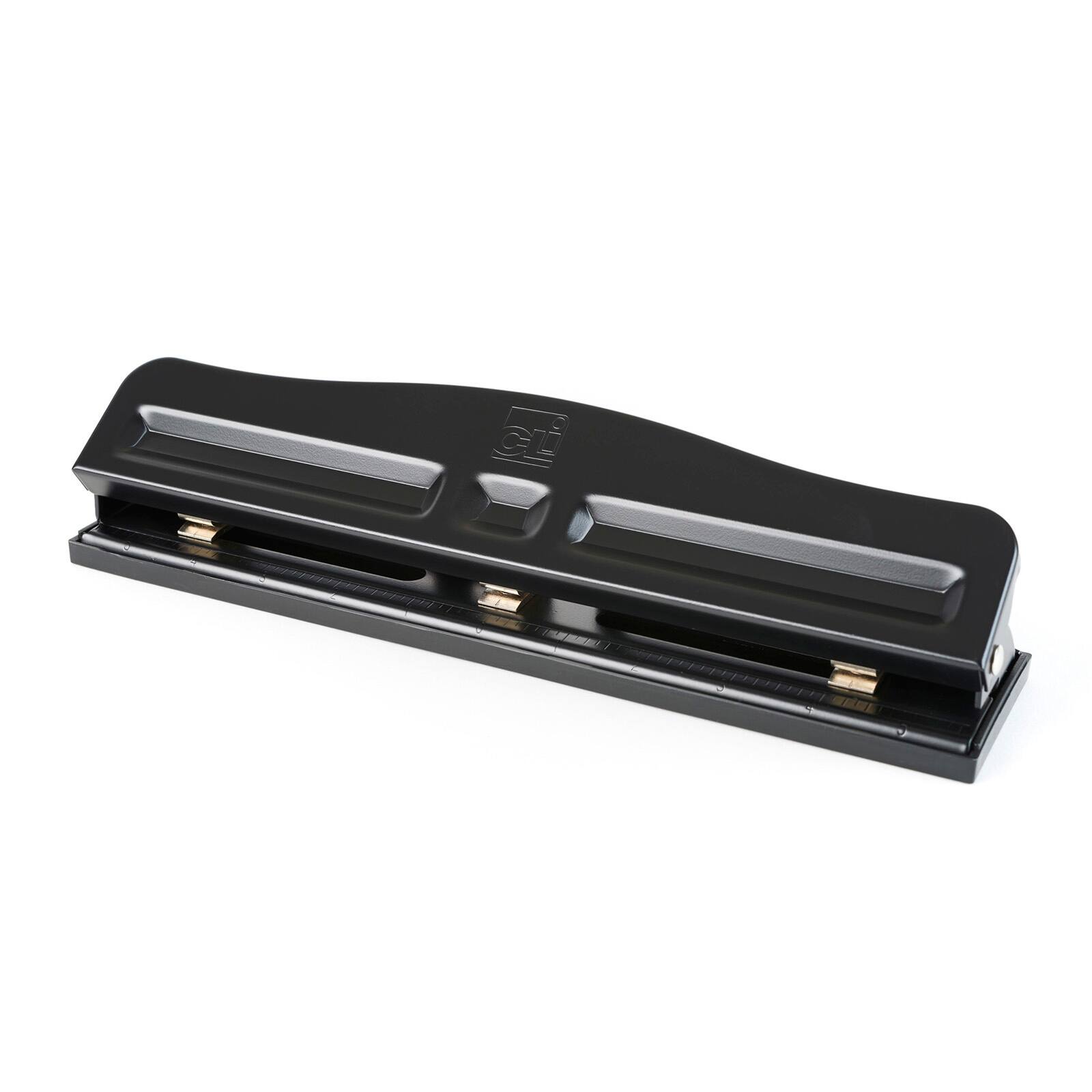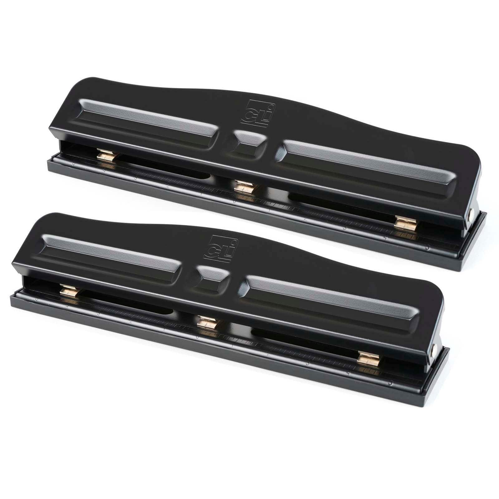 Charles Leonard Black 3-Hole 12-Sheet Paper Punch with Adjustable Holes, 2ct.