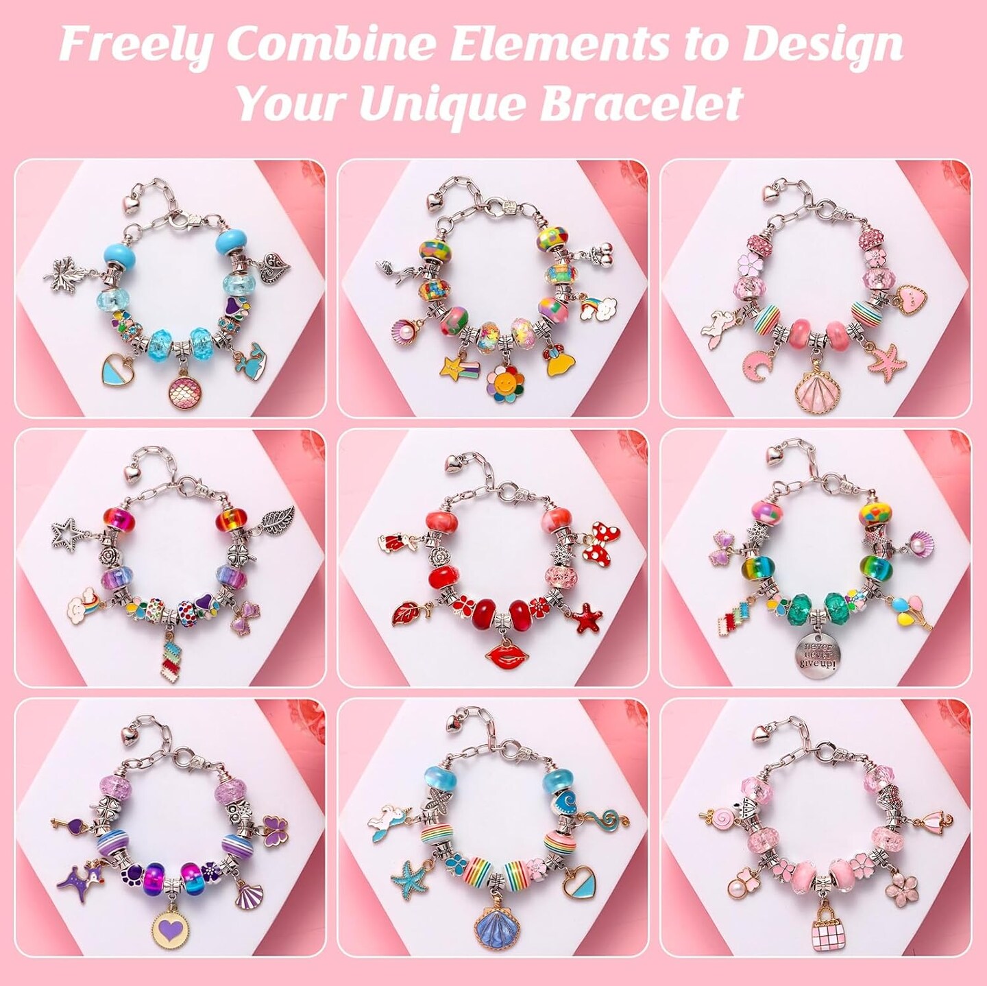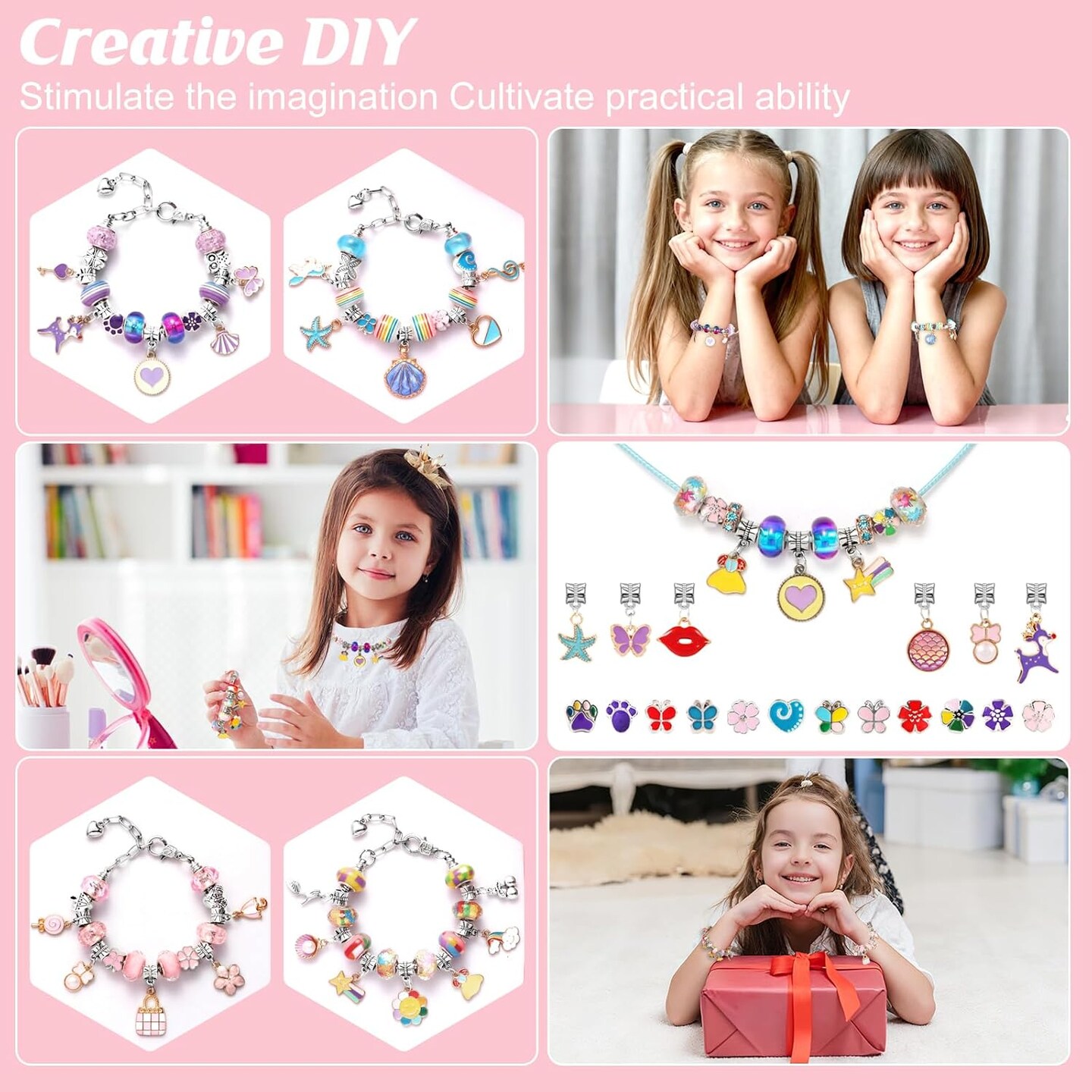 Charm Bracelet Making Kit, DIY Jewelry Making Kit Christmas Gifts for Girls 5-12 Years Old, Beaded Jewelry Making Kit with Jewelry Box, Creative Crafts for Girls (Multicolor)