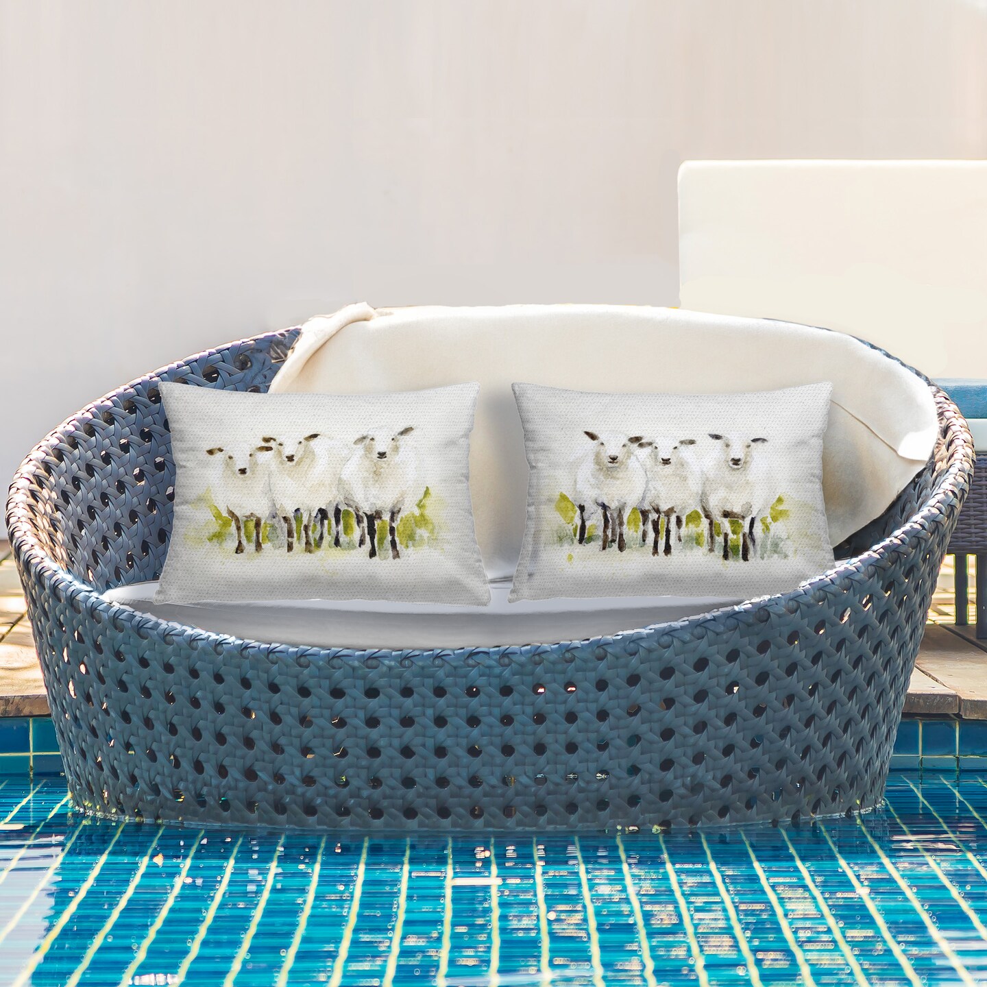 Charming Farmhouse Sheep Design by Victoria Barnes Outdoor Printed Pillow (Set of 2)