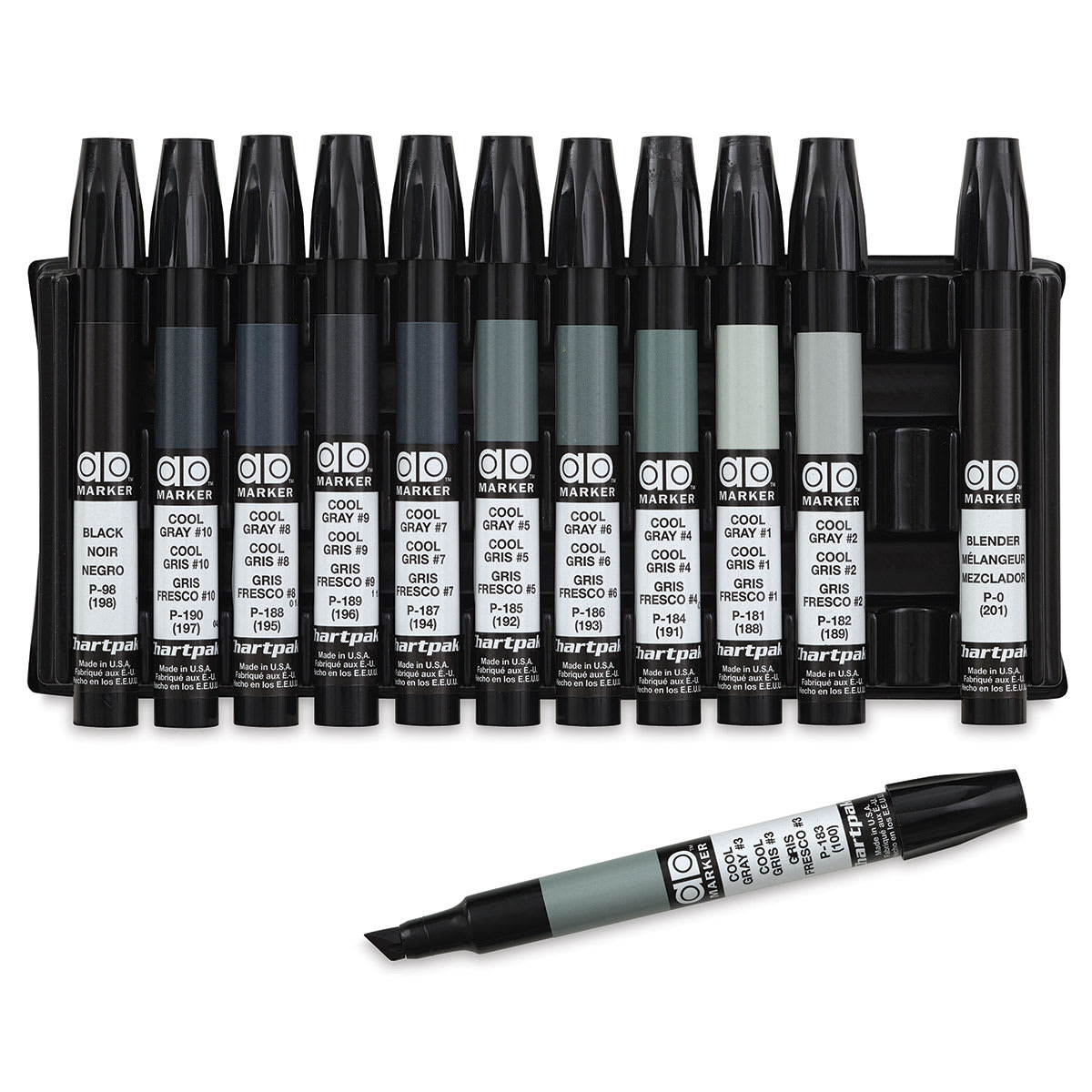Chartpak Ad Markers - Set of 12, Cool Grays