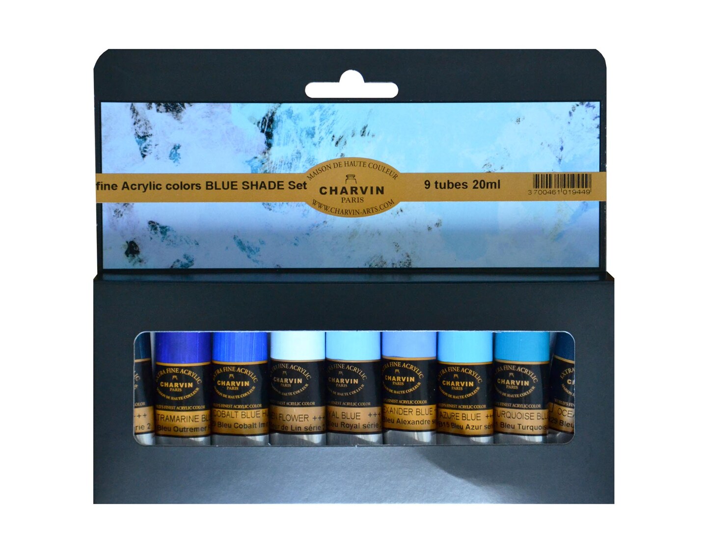 Charvin Extra Fine Professional Acrylic Paint Set for Artists, Blue Shades - Bonjour Set of 9, 20 ml Tubes, Triple-Milled, Lightfast Pigments, Artist Acrylic Paints in Nature-Inspired Hues