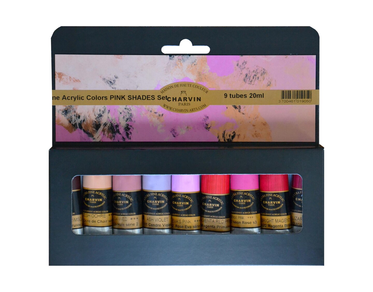 Charvin Extra Fine Professional Acrylic Paint Set for Artists, Pink Shades - Bonjour Set of 9, 20 ml Tubes, Triple-Milled, Lightfast Pigments, Artist Acrylic Paints in Nature-Inspired Hues