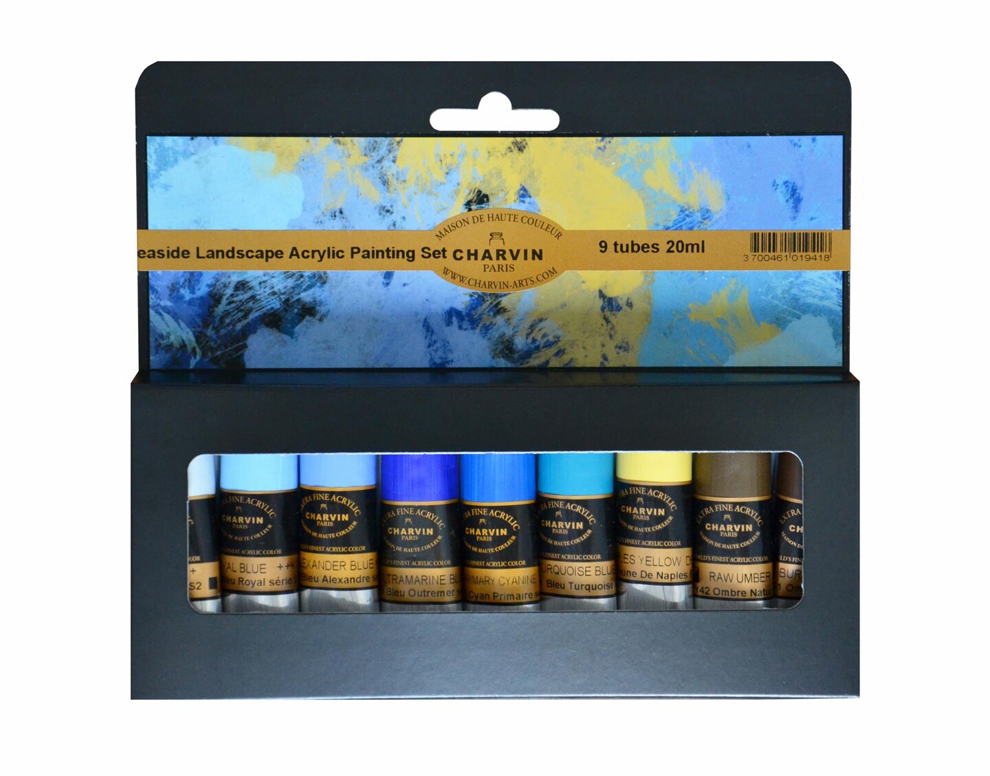 Charvin Extra Fine Professional Acrylic Paint Set for Artists, Sea Landscape - Bonjour Set of 9, 20 ml Tubes, Triple-Milled, Lightfast Pigments, Artist Acrylic Paints in Nature-Inspired Hues