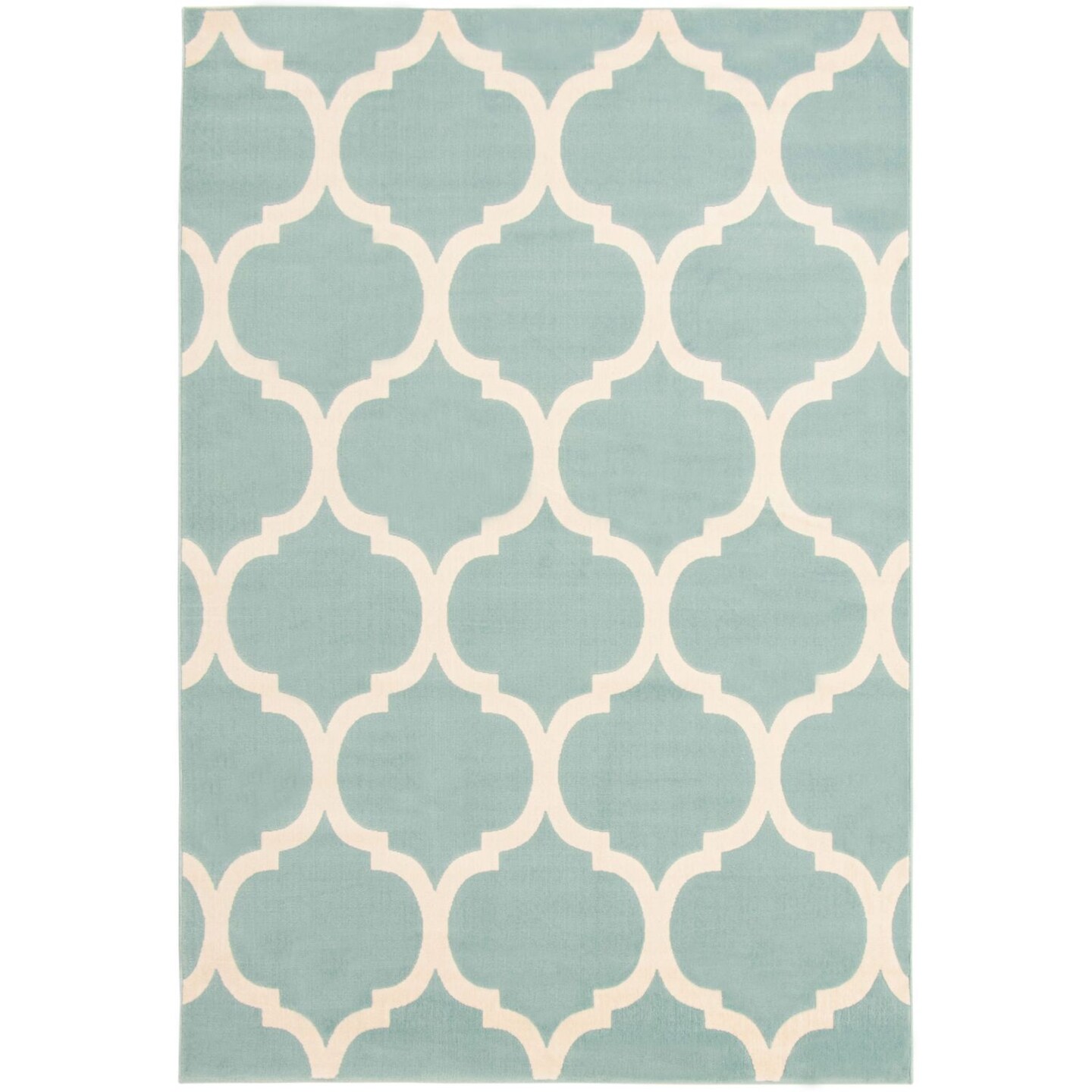 Chaudhary Living 4.5' x 6.5' Moroccan Rectangular Area Throw Rug - Aqua Blue and Off White