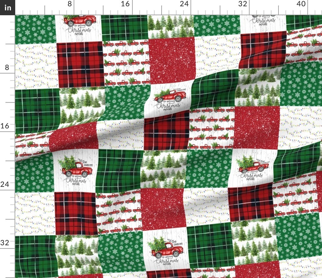 Cheater Quilt Rustic Christmas Plaid Tartan Red Truck Country Christmas Farmhouse Snowflakes Christmas Lights Snowflakes Trees Classic Custom Printed Fabric by Spoonflower Various Fabrics by the Yard or Fat Quarter