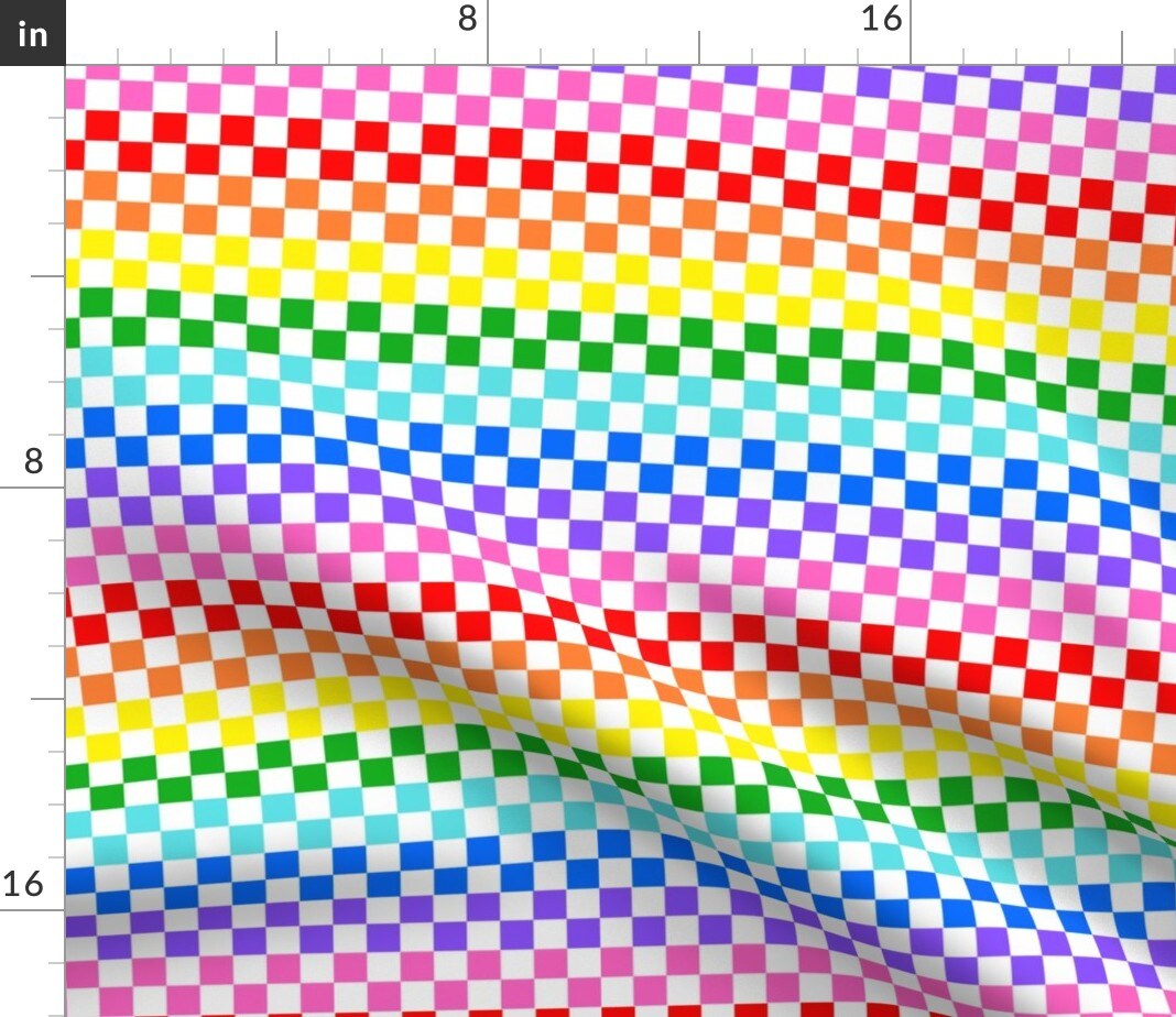 Check Rainbow Checkered Pride Lgbt Lgbtqia+ Blue Red Yellow Pink Pattern Grid Geometric Custom Printed Fabric by Spoonflower Various Fabrics by the Yard or Fat Quarter