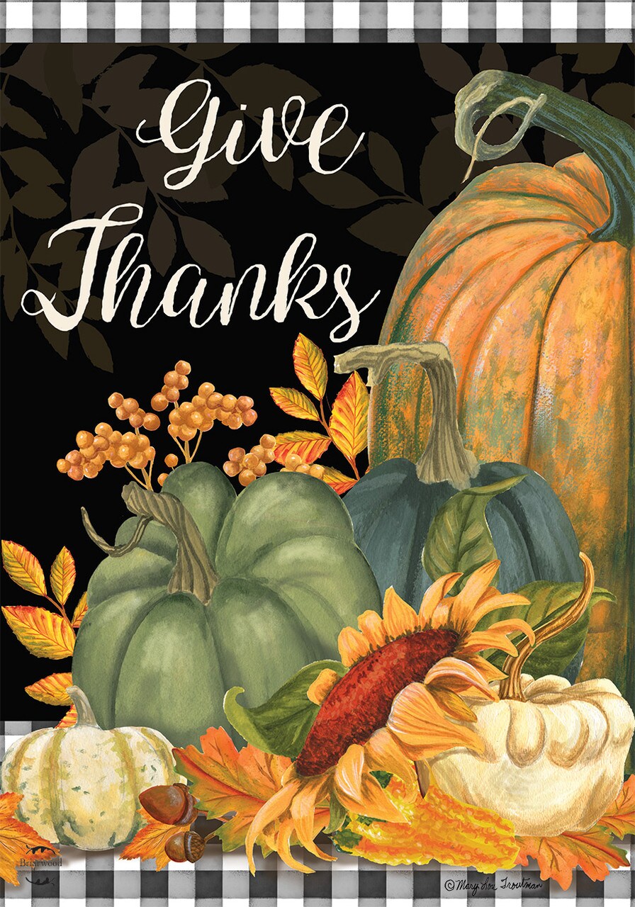 Checkered Give Thanks Primitive Garden Flag