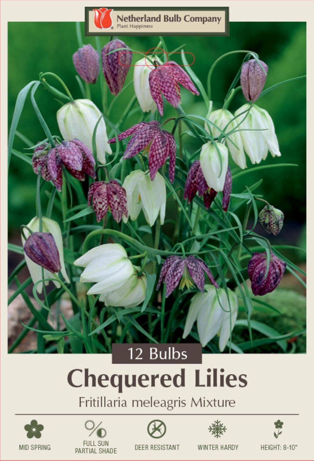 Checkered Lily Mix 12 Bulbs - Fritillaria meleagris - Heirloom! - 6/+ cm Bulbs