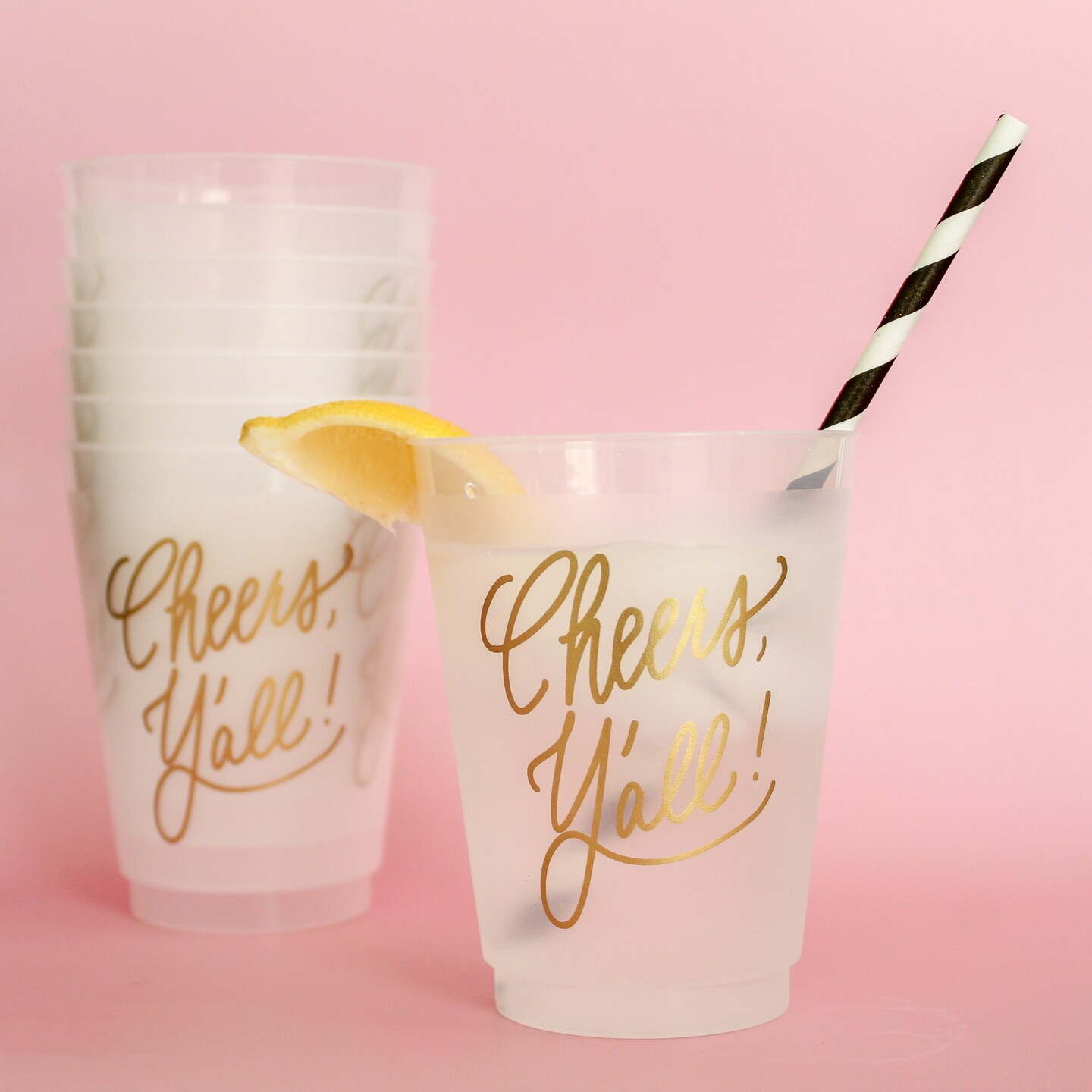 Cheers Y'all Party Cup, Set of Eight 16 Ounce Plastic Cups