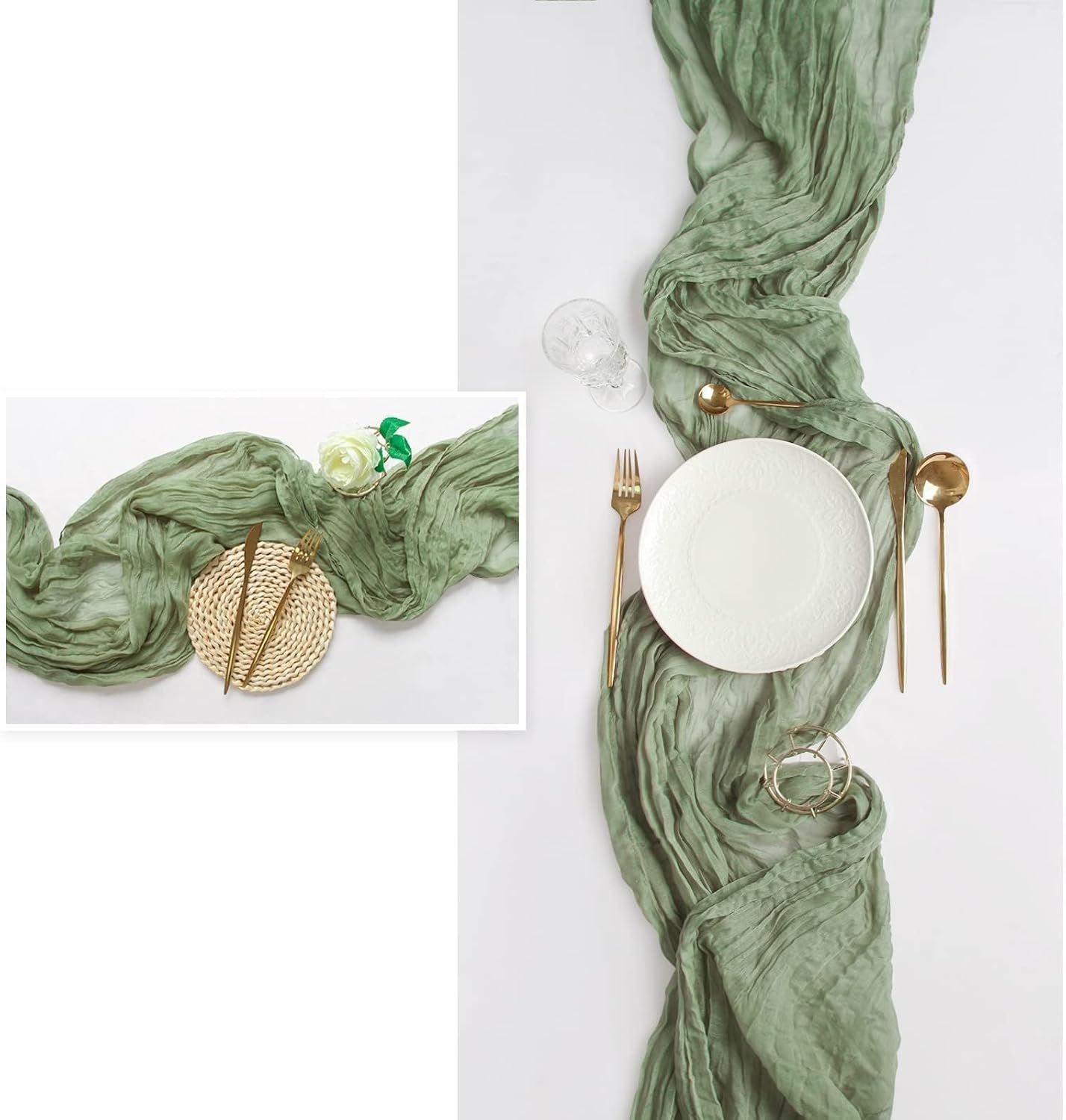 Cheesecloth Spring Gauze Rustic Table Runner Sage Green for Wedding