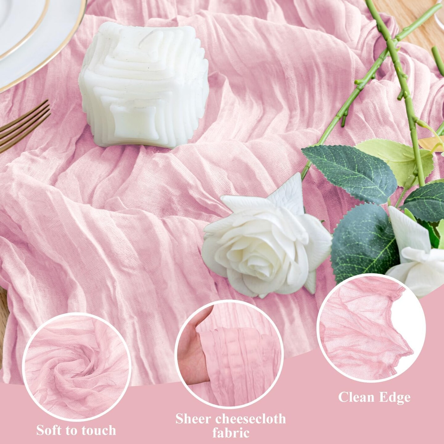 Cheesecloth Table Runner 2Pack 10FT (Blushing Pink)