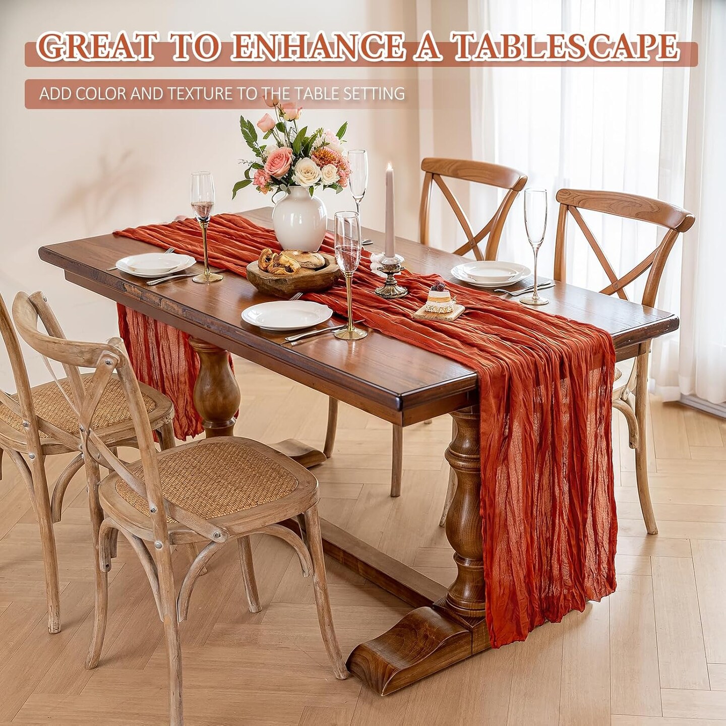 Cheesecloth Table Runner, Boho Rustic