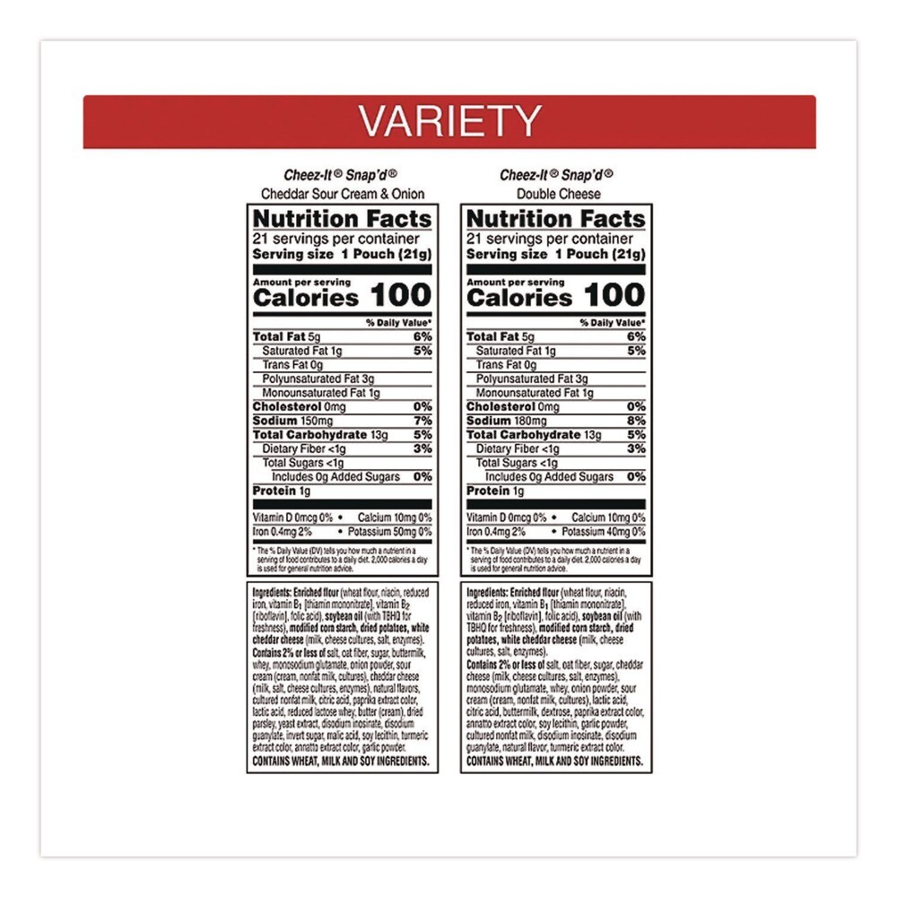 Cheez-It Snap'd 0.75 oz. Bag Crackers Variety Pack - Cheddar Sour Cream and Onion/Double Cheese (42/Carton)