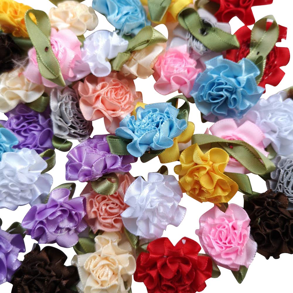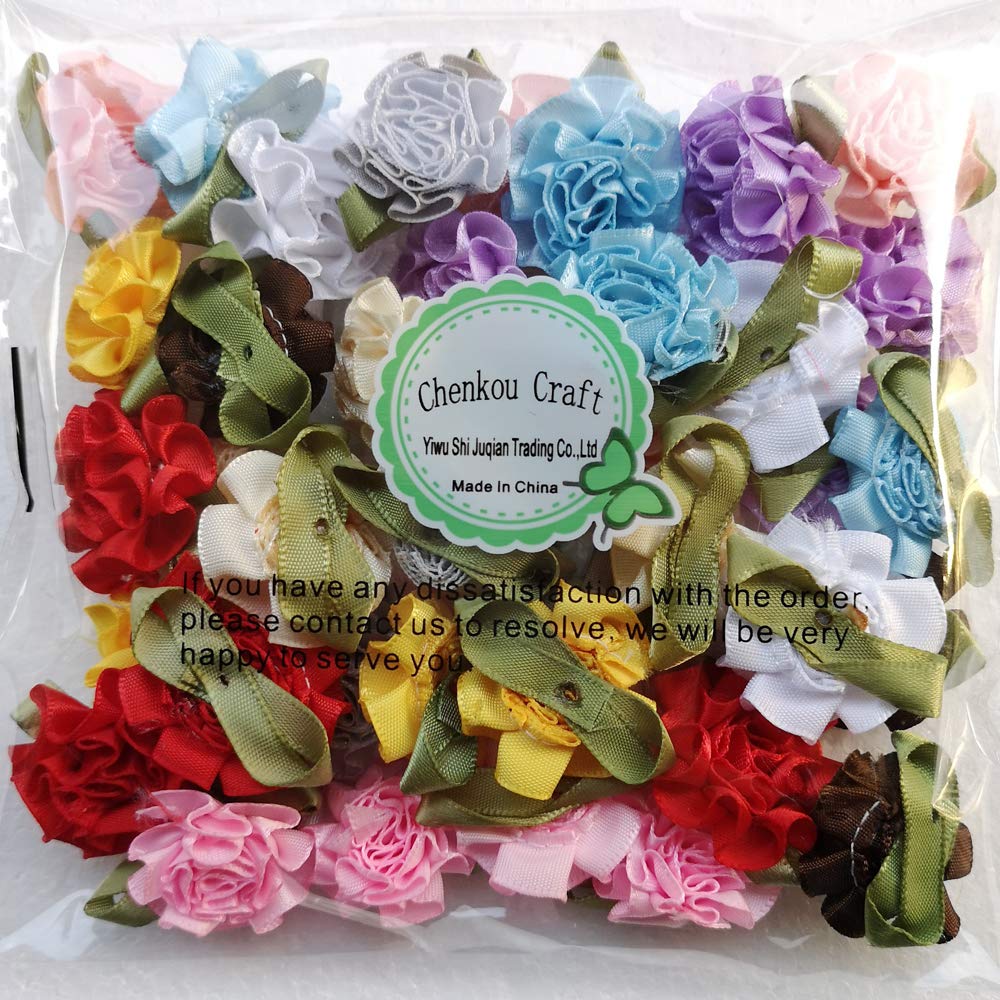 Chenkou Craft 40pcs Ribbon Flowers Bows Carnation Appliques Sewing Craft (Multi)