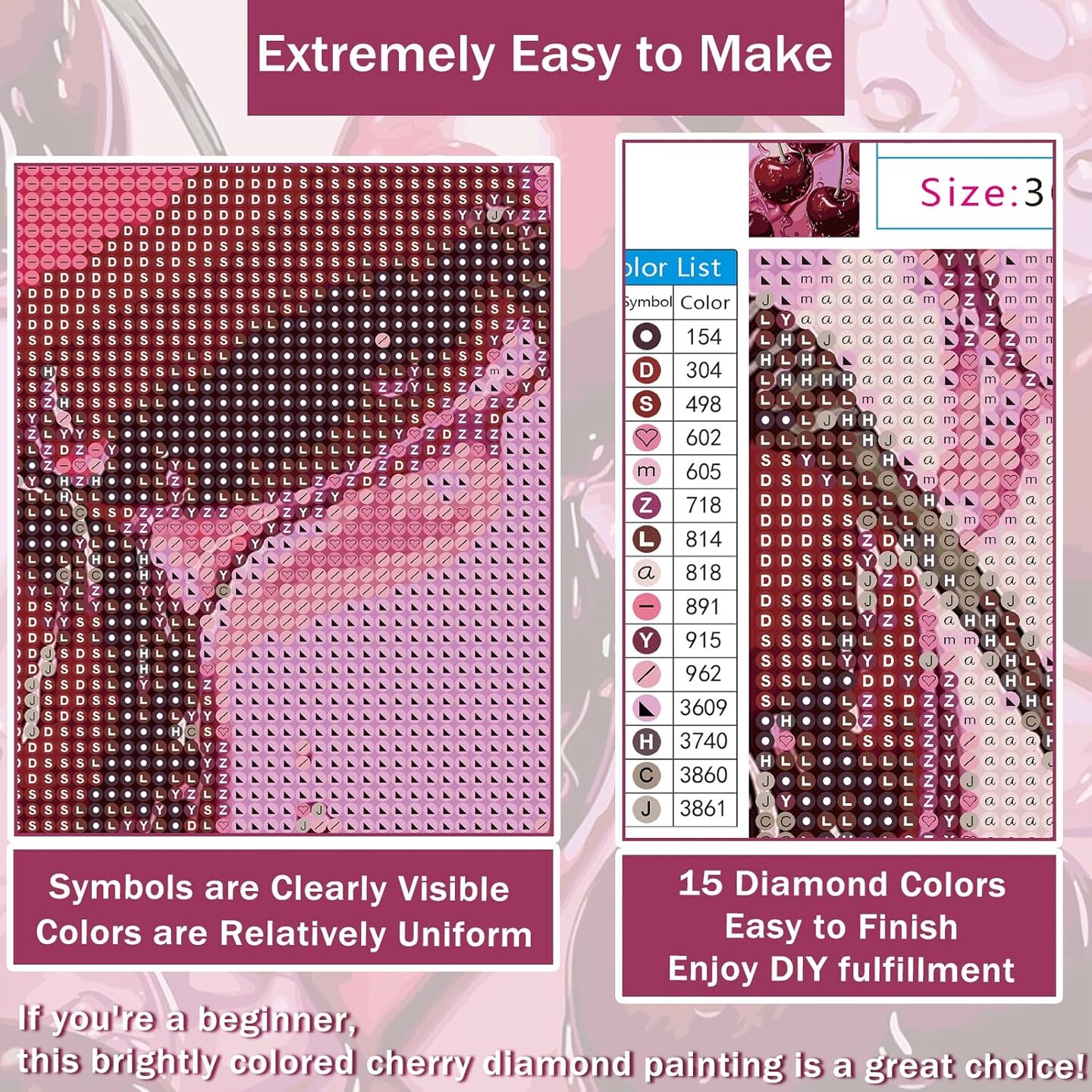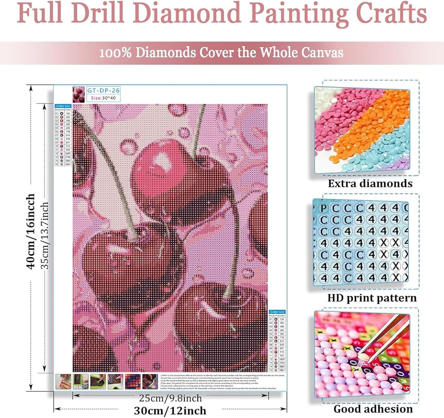Cherry 5D Diamond Painting Kit for Adults 12x16in Full Drill DIY Wall Art with Tools