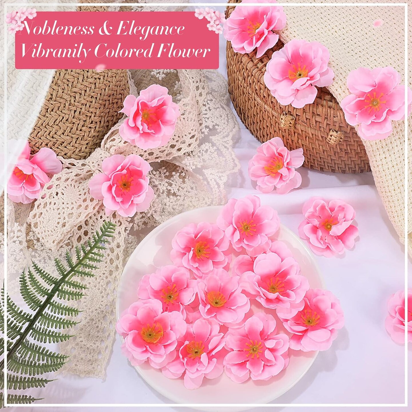 Cherry Blossom Heads,100pcs Artificial Fake Silk Cherry Blossom Petals Sakura Floral Head Decor for Craft Wedding Party