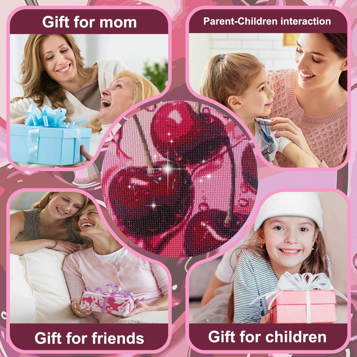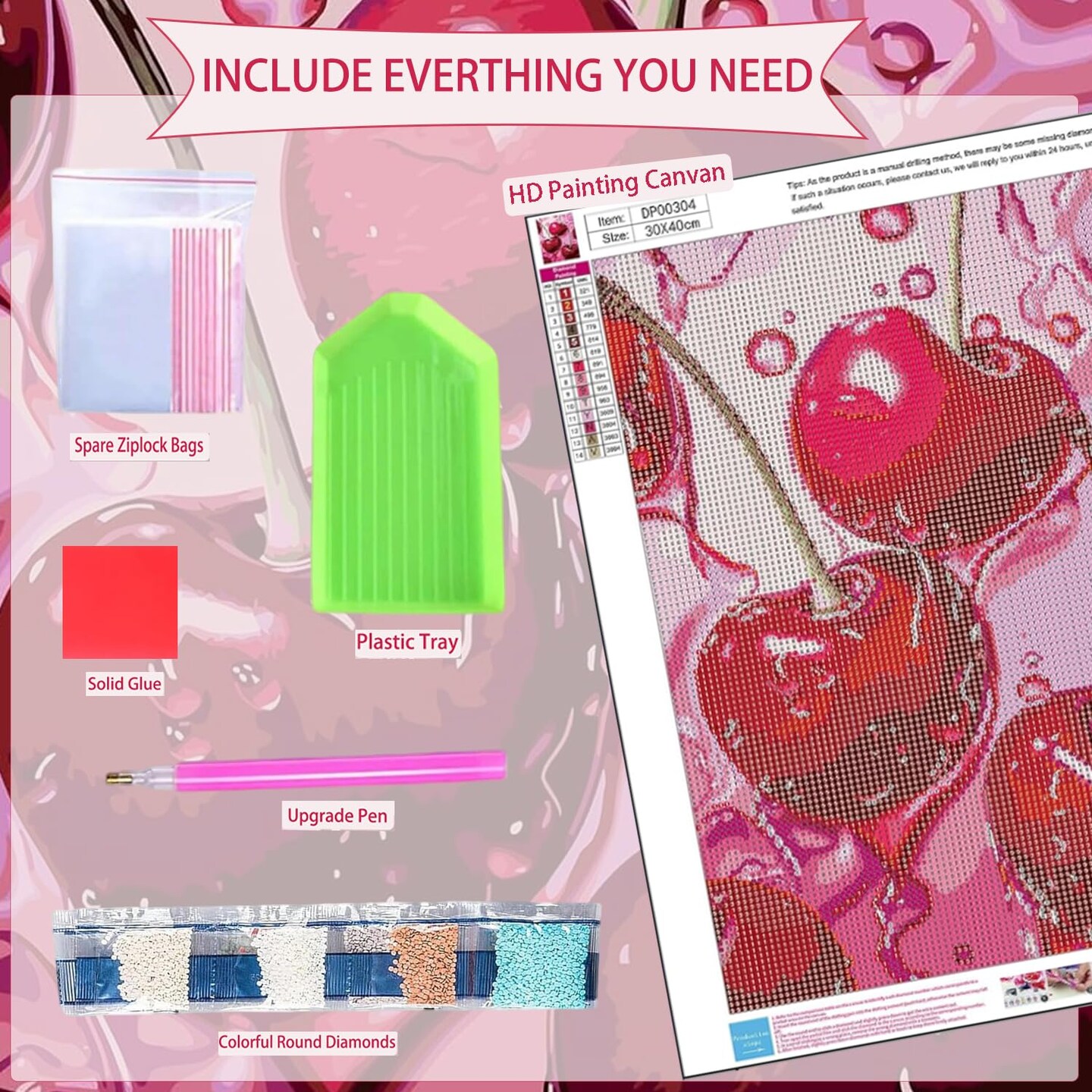 Cherry Diamond Art Kits for Adults,Cherry 5D Diamond Painting Kits for Adults Beginners,DIY Full Round Drill Diamond Dot Painting Gem Art Kits for Adult, Home Wall Decor 12x16Inch