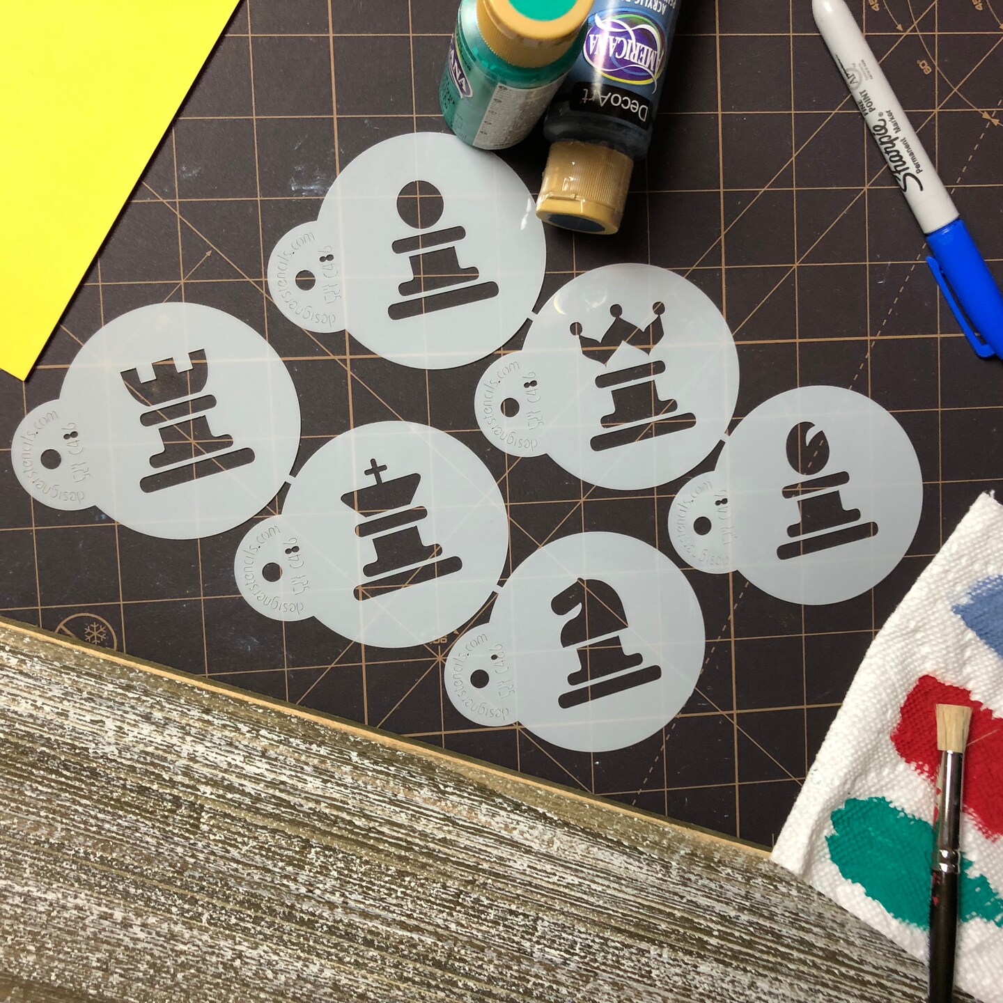 Chess Cookie Stencil Set | C486 by Designer Stencils | Cookie Decorating Tools | Baking Stencils for Royal Icing, Airbrush, Dusting Powder | Reusable Plastic Food Grade Stencil for Cookies | Easy to Use & Clean Cookie Stencil