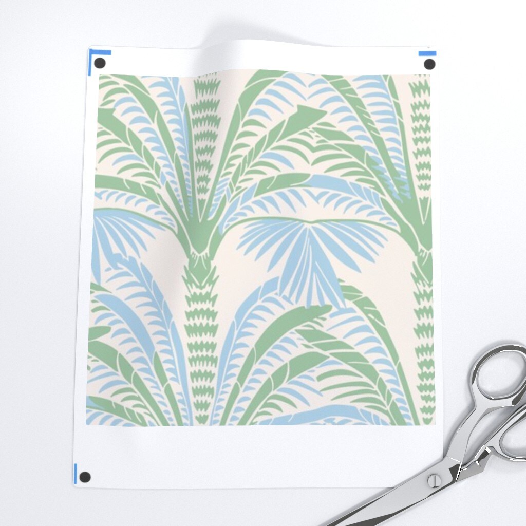 Chic Botanical Green Blue Palm Trees Tropical Leaf Grand Millennial Coastal Custom Printed Fabric by Spoonflower Various Fabrics by the Yard or Fat Quarter