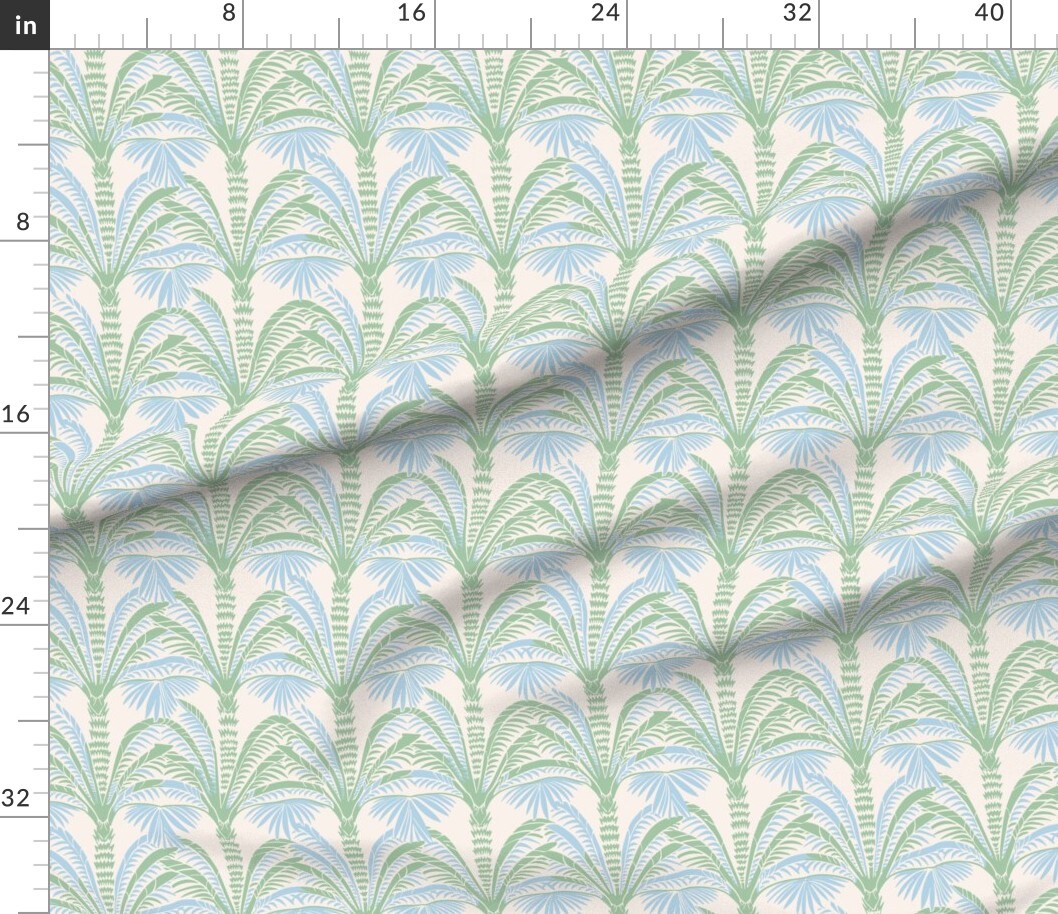 Chic Botanical Green Blue Palm Trees Tropical Leaf Grand Millennial Coastal Custom Printed Fabric by Spoonflower Various Fabrics by the Yard or Fat Quarter