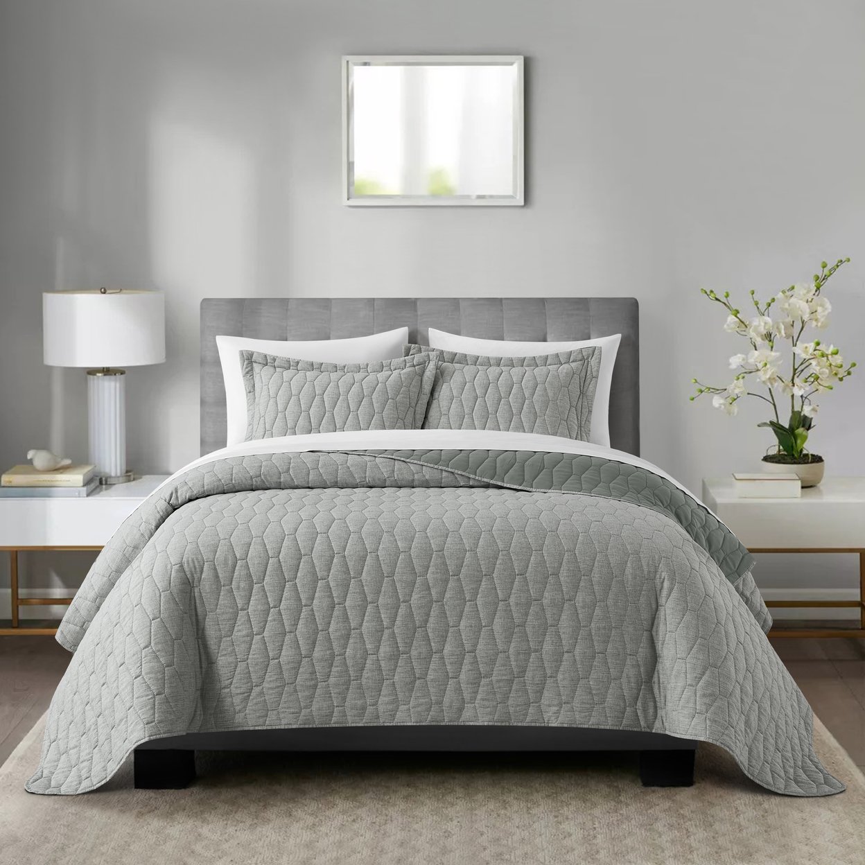 Chic Home 3 Piece Nahla Quilt Set - Geometric Hexagon or Diagonal Pattern Bedspread Coverlet