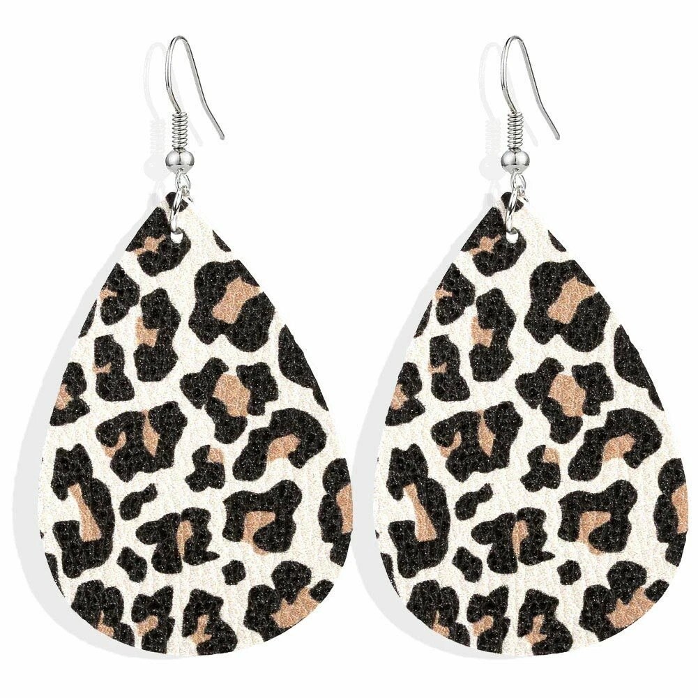 Chic Leopard Print Teardrop Leather Drop Earrings